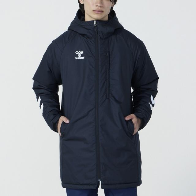 ヒュンメル 中綿コート メンズ ジュニア 140cm 160cm S〜XOサイズ hummel チームパデッドハーフコート 防風 保温 はっ水 防寒用アウター ベンチコート ハーフ丈 メンズウエア 男性 大人 子供服 キッズウエア ブランド アパレル/HAW8117【ギフト不可】