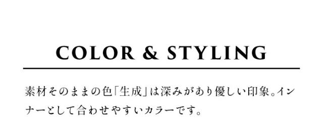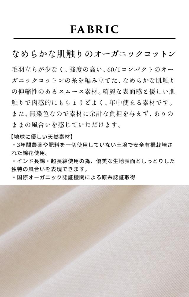 特徴 肌に触れるものは、やさしいコットンにこだわりたい。オーガニックコットンで編み立てた生地を、染色せずそのまま使用した、素材本来の色を愉しめる、地球にもお肌にもやさしいタートル。縫い糸もコットンでコーティングされたものを使用し、お肌に触れる部分は、綿でできているので化繊が苦手な方にも安心してお試しいただけます。首元を包みこむタートルネックデザインは、重ね着にも、一枚でも品よく馴染みます。