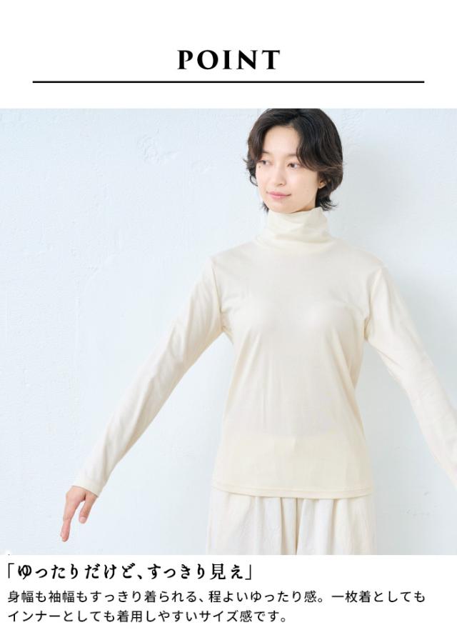 無染色 オーガニックコットン タートル 日本製 タートルネック レディース オーガニックコットン インナー 40代 50代 60代 女性 ファッション カットソー 長袖 きなり 肌に優しい 保温 綿 コットン シンプル 秋 冬 春 重ね着 レイヤード