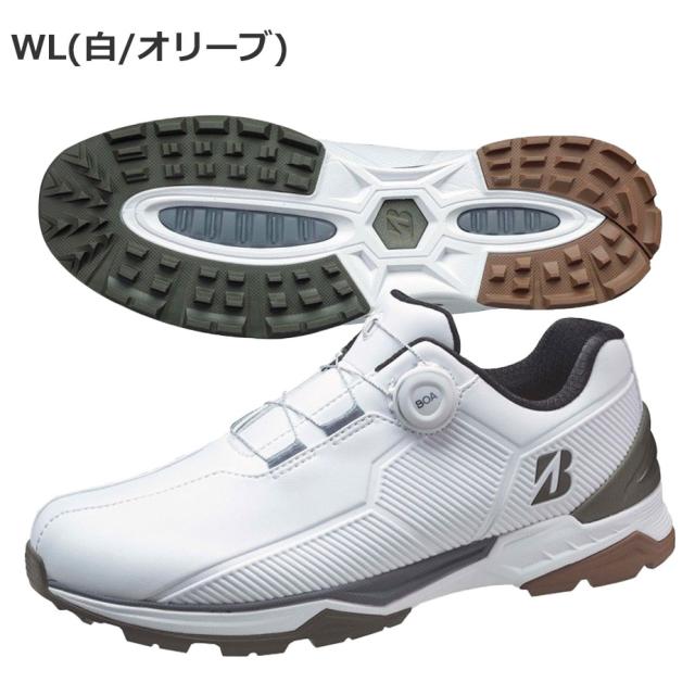 ブリヂストン ゴルフシューズ メンズ ゼロ・スパイク バイター ワイド SH2507 WL 白×オリーブ 4E スパイクレス ボア ダイヤル式 2025年モデル BRIDGESTONE GOLF
