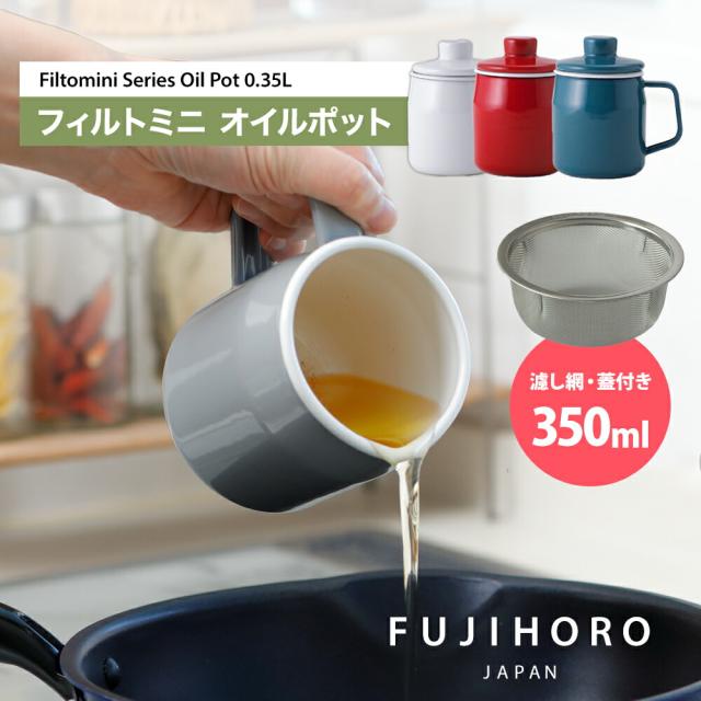 フィルト ミニオイルポット 0.35L 350ml 富士ホーロー 取手付き こし網付き オイルボトル 油ポット オイルポット ミニ 揚げ焼き 少量の揚げ物 調味料入れ おしゃれ 琺瑯 ホーロー ホーローガラス キッチン用品 容器 調味料入れ オイルボトル オイル差し 油さし あげやき