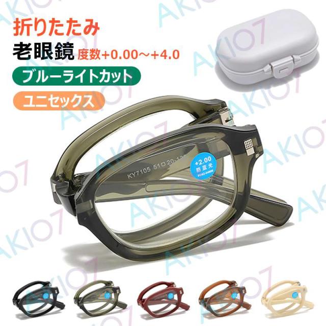 【度数+0.00〜+4.0選択可・ケース付き】折りたたみ 老眼鏡 ブルーライトカット 老眼用メガネ おしゃれ 紫外線カット 眼鏡 度なし pcメガネ パソコン用メガネ メンズ レディース かっこいい 男女兼用 軽量