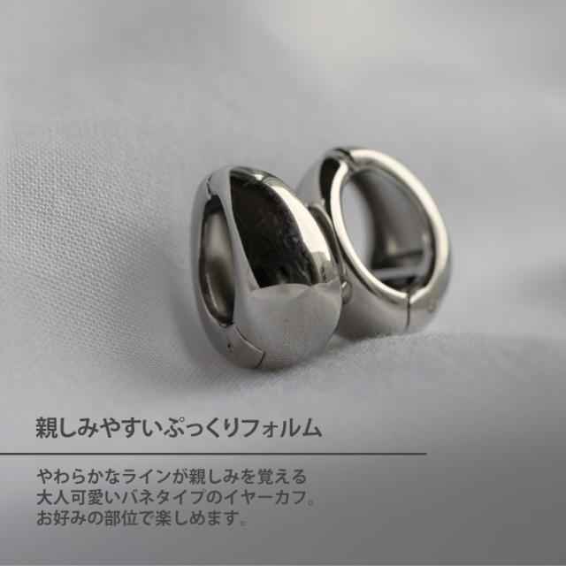 親しみやすいぷっくりフォルム。やわらかなラインが親しみを覚える大人可愛いばねタイプのイヤーカフです。