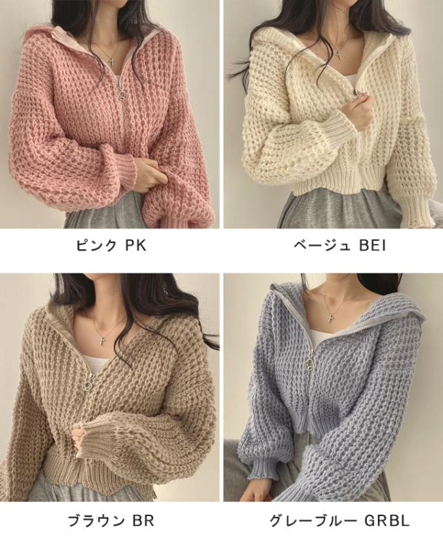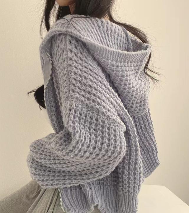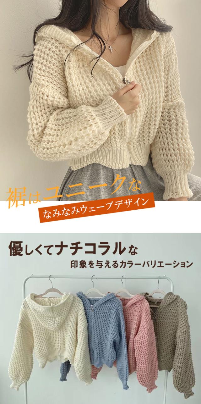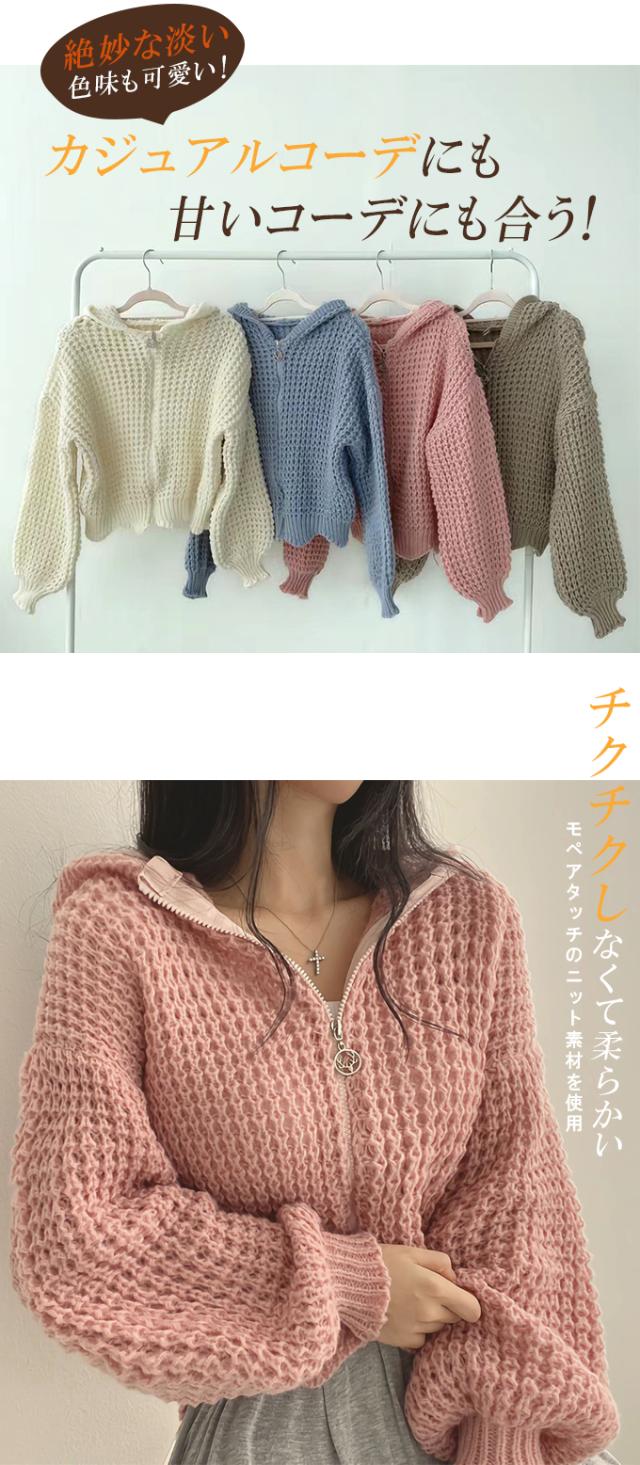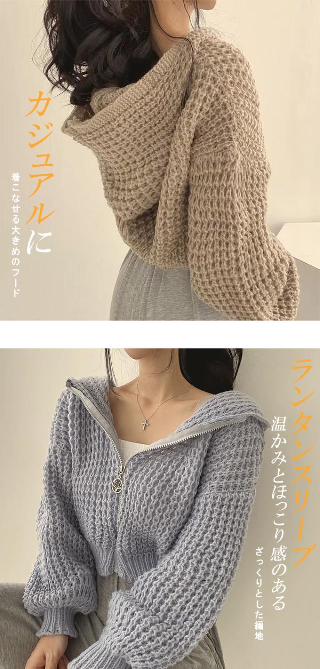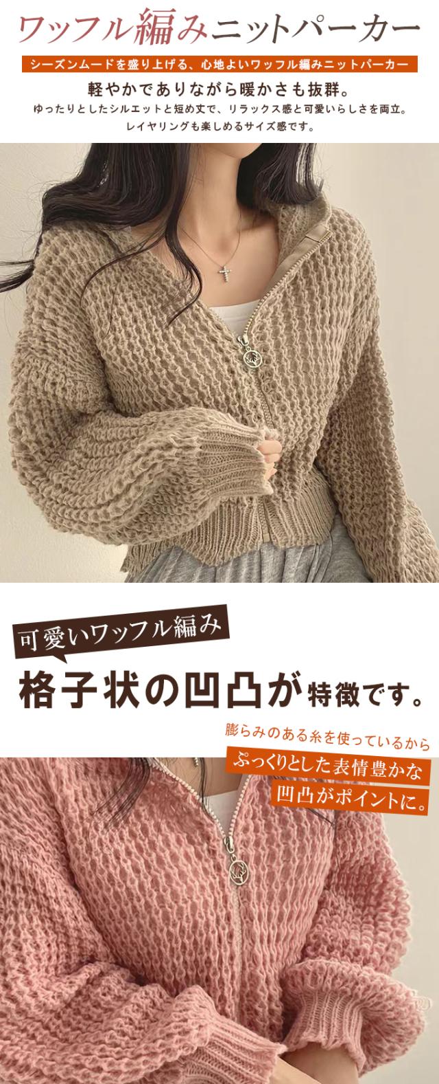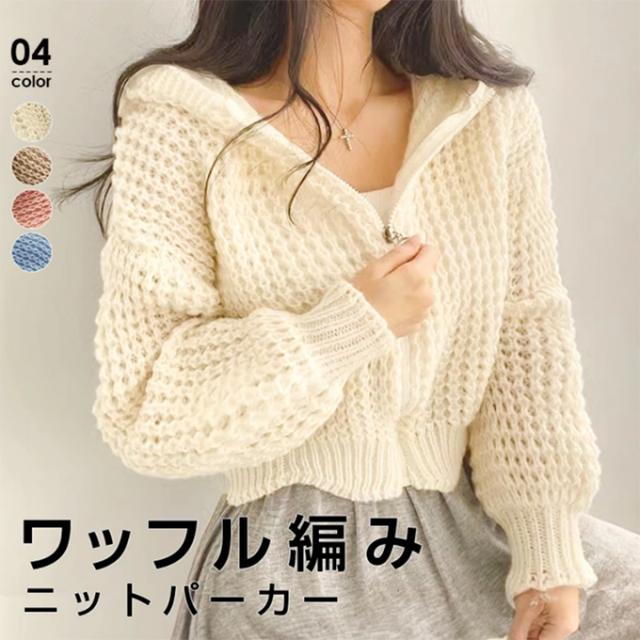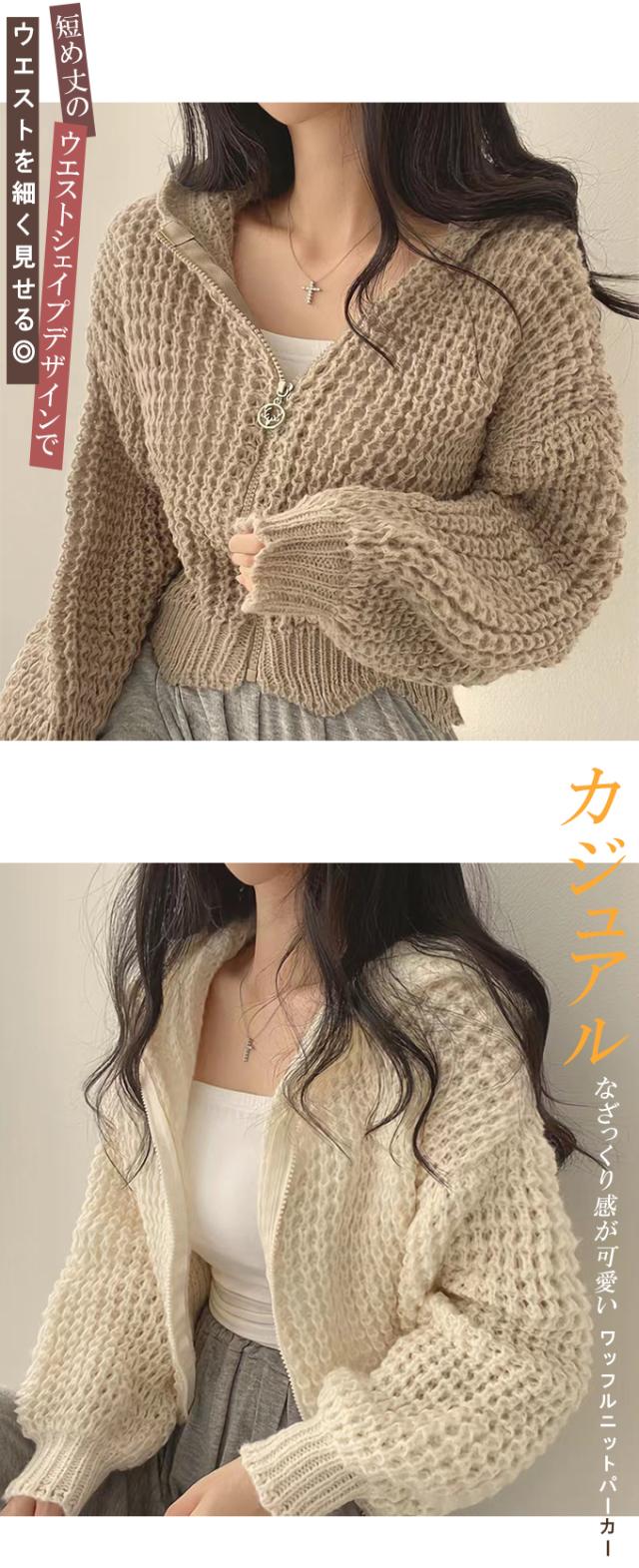 10%OFF,2052円、トップス カーディガン ワッフル パーカー レディース ニット 長袖 秋冬 セーター 無地 ショット丈セーターアウター ゆったり ジッパー暖かいフード付きコート