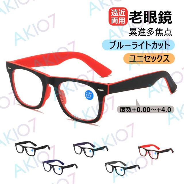 【度数+0.00〜+4.0選択可・ケース付き】老眼鏡 ブルーライトカット 老眼用メガネ 遠近両用 累進多焦点 おしゃれ 紫外線カット 眼鏡 度なし pcメガネ パソコン用メガネ メンズ レディース かっこいい 男女兼用 軽量