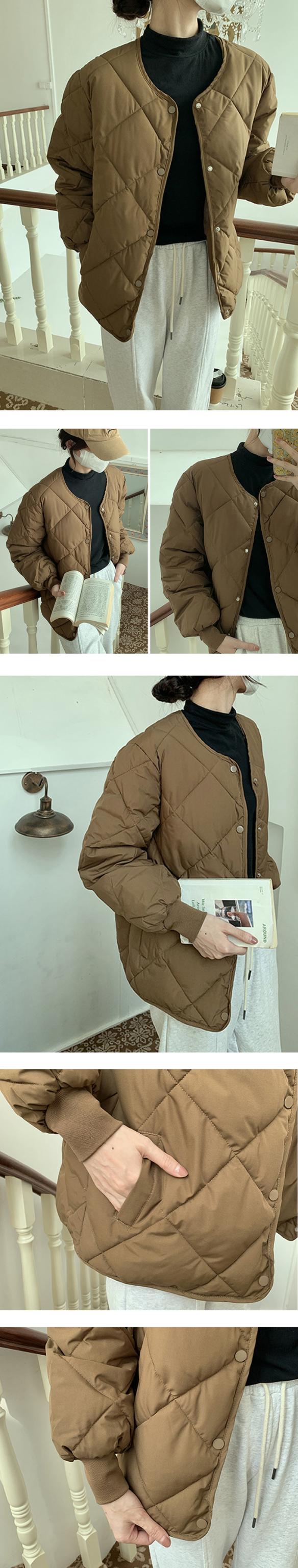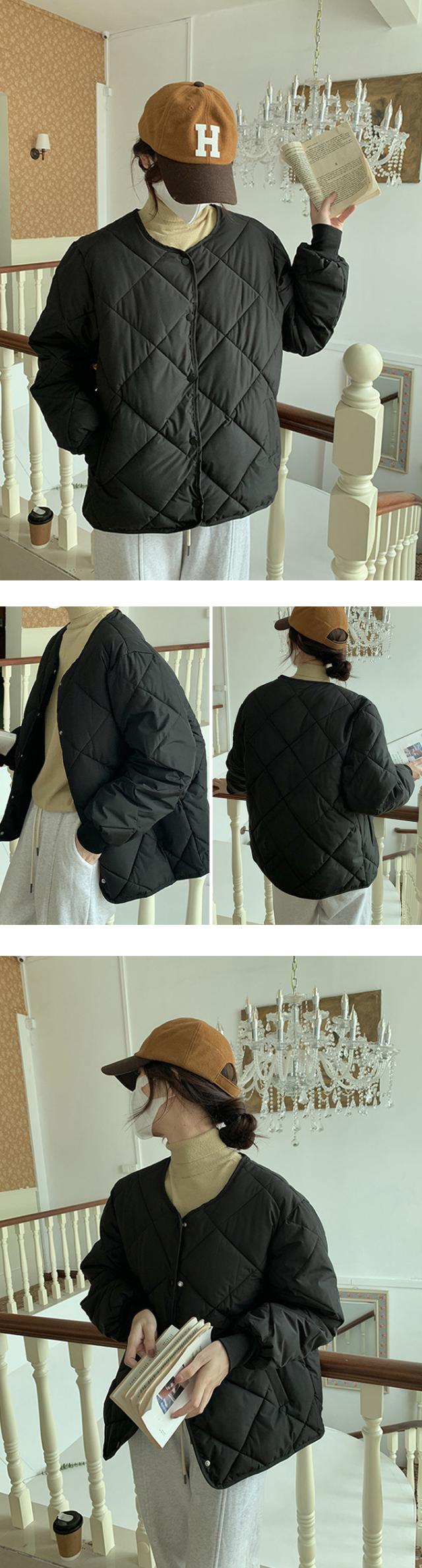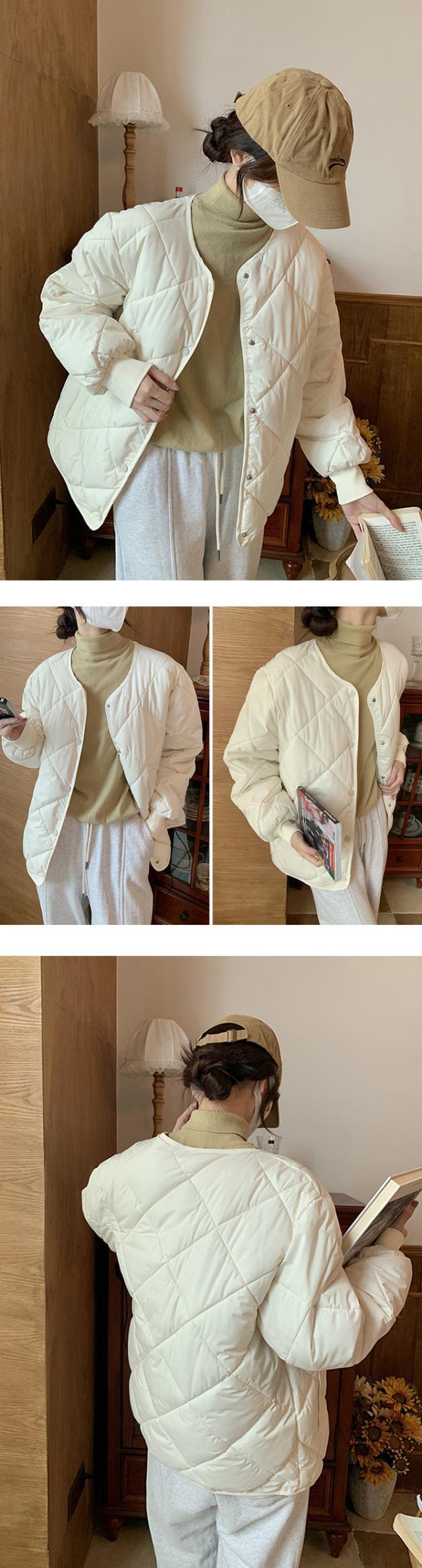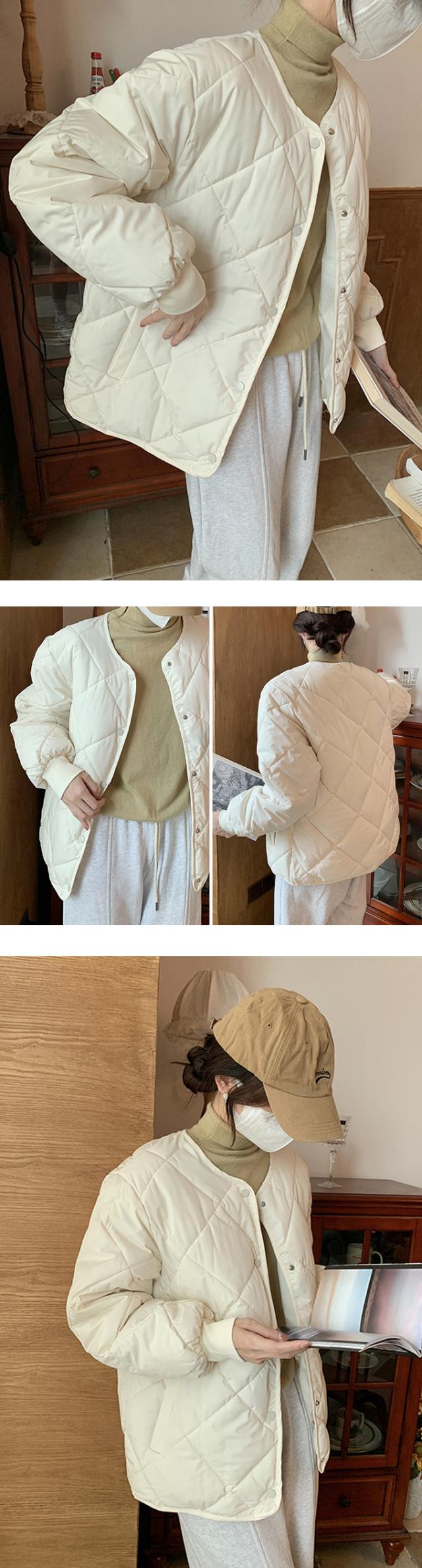 ノーカラー中綿キルティングジャケット