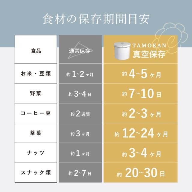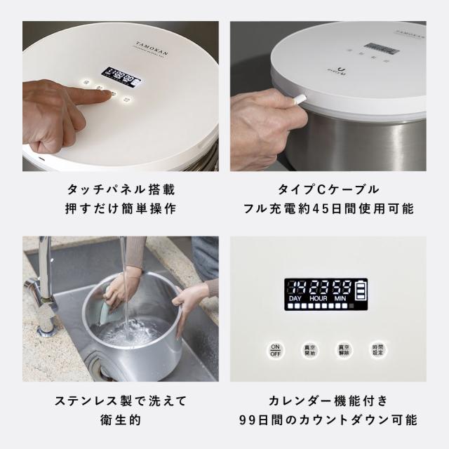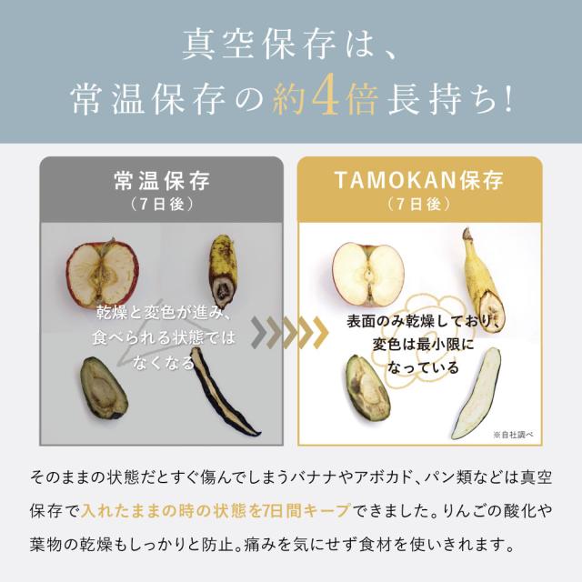 真空保存容器TAMOKANは食品や物品を空気から隔離し、鮮度や品質を長期間保つことができる容器です。