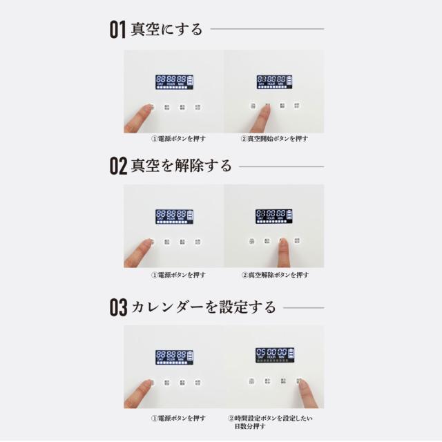 空気を抜くことで劣化に繋がるさまざまな要因をブロックし、新鮮な状態をキープします。