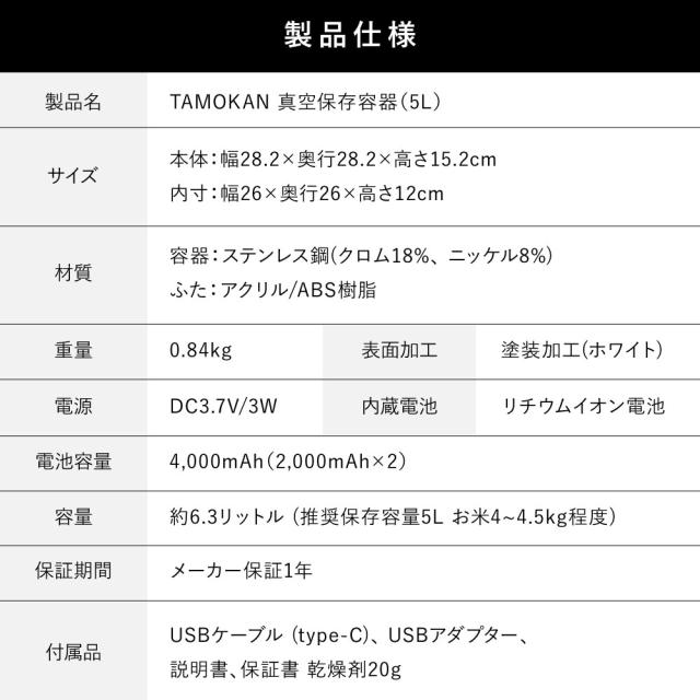 TAMOKAN every U. 真空保存容器 【every U.】5kg タモカン真空 米びつ 真空ストッカー フードストッカー 長期保存 真空保存 約4倍長持ち 買い置き 鮮度 米 穀物 パン 食品 お菓子 コーヒー豆 茶葉 ナッツ 乾麺 調味料 ドックフード キャットフード 送料無料