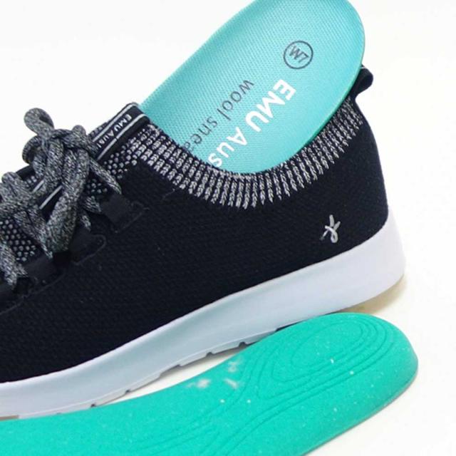 ニット編みがナチュラルで優しい印象のアイテム。黒のEMU Australiaのロゴテープが足元をキュっと引き締めるワンポイント!アナトミカルインソールは足の骨格に合わせた形状で足のアーチをしっかりと支えフィット感を高めます。軽量でクッション性が高いので、長時間の歩行も快適にサポートしてくれる優秀アイテム。メリノウールやコットンは吸湿・放湿に優れているため、汗などの水分を吸湿し、外に逃がす効果があり蒸れにくく快適に過ごせます。洗濯機で丸洗い可能なウールスニーカーです。