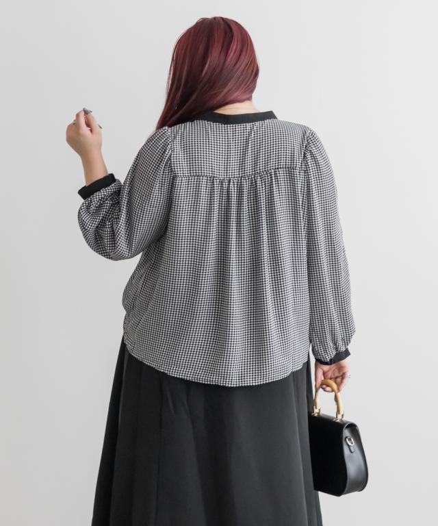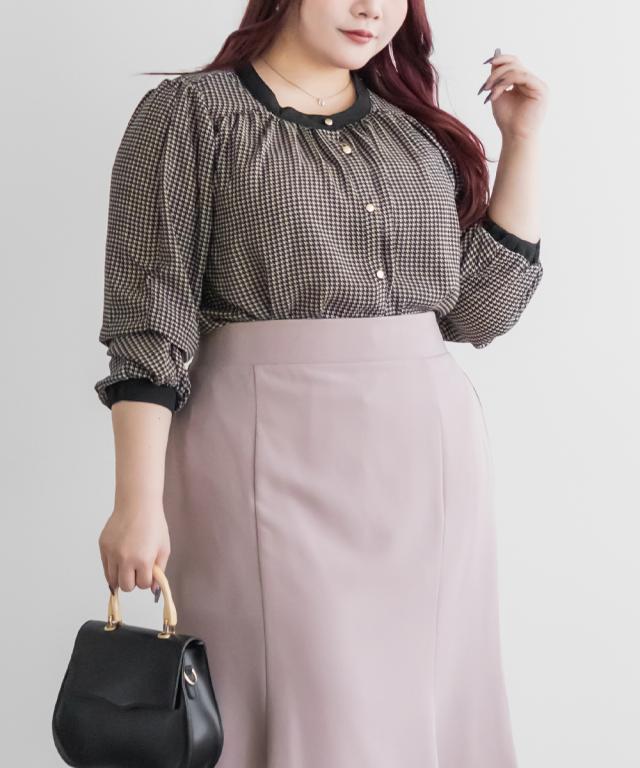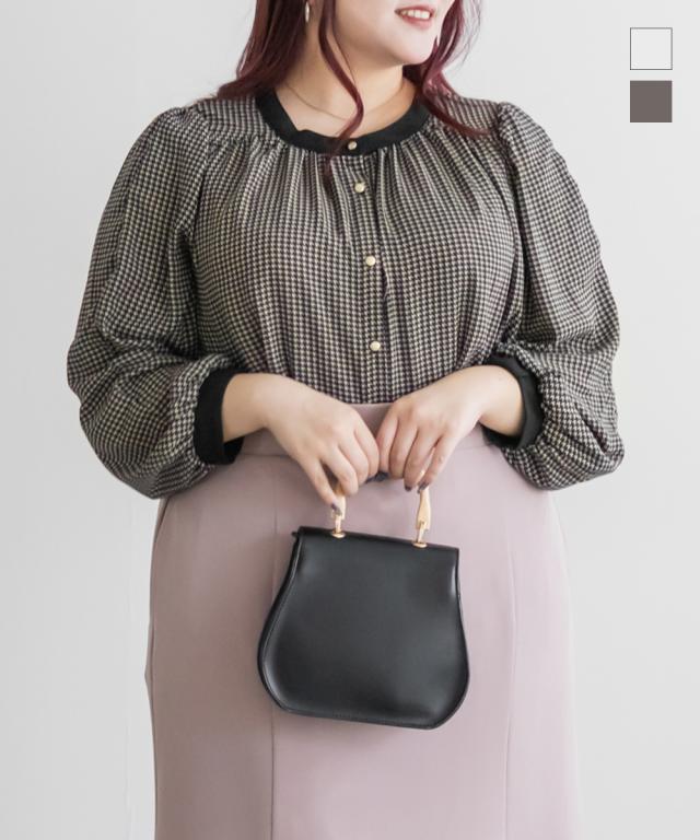 大きいサイズ/レディース/3L/4L/2WAYスリーブ千鳥柄ブラウス