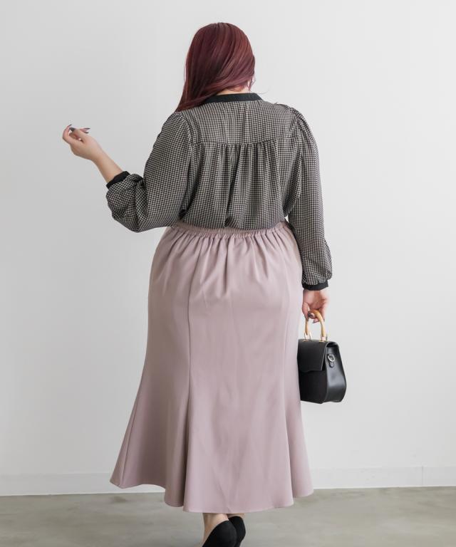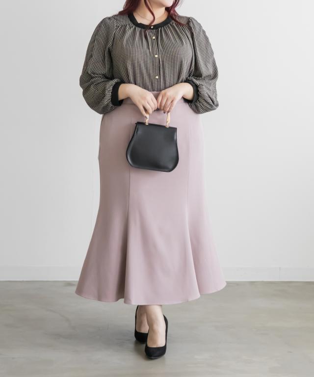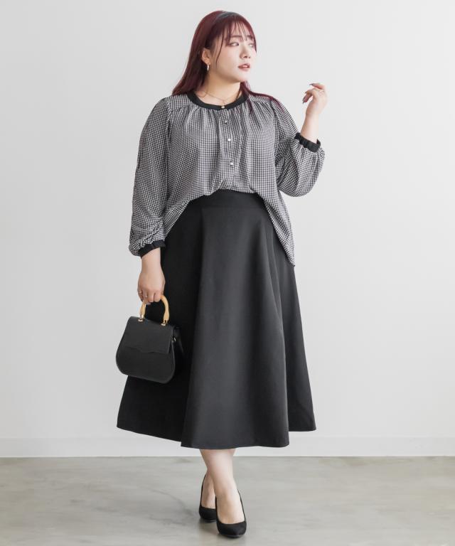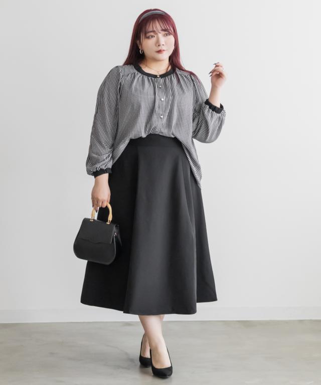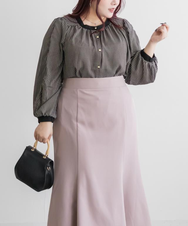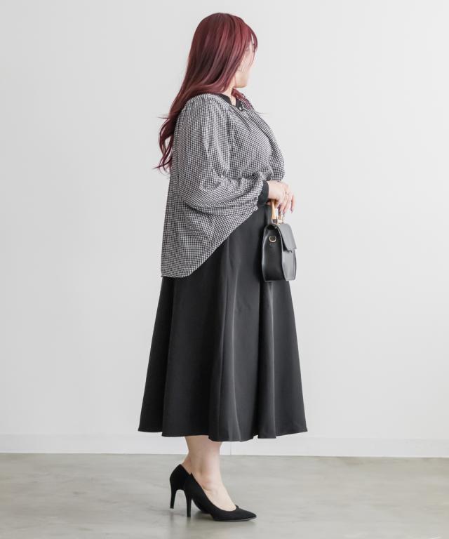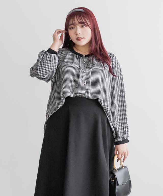 | 3Lサイズを着用して、ちょうどいいサイズでした。さらっとした軽いブラウス生地で落ち感があって大人っぽく着用出来ました◎普段使いはもちろん、オフィスシーンにもおすすめです!ジャケットを羽織ったり、ワンピースと重ね着してもごわつかない薄手ブラウスで着回し力抜群です!上品な千鳥柄がコーデのポイントになって、落ち着いた印象になれます。袖の長さは中のボタンで変えられて長いシーズン着用できるのもうれしいです♪ |