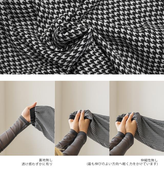 | 裏地無し、透け感わずかに有り、伸縮性無し |
