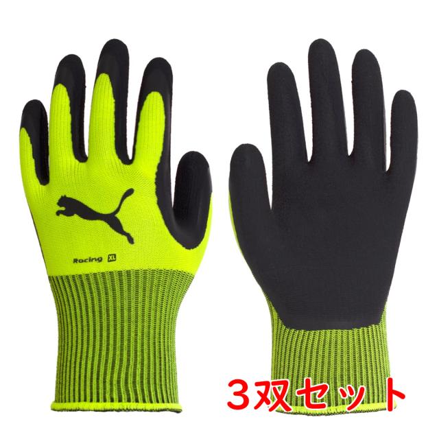 【サイズ:XL】 3双セット プーマ 作業用手袋 背抜き手袋 PUMA WORK GLOVES 天然ゴムコーティング手袋 レーシング PG-1350 イエロー(商品コード:720118)
