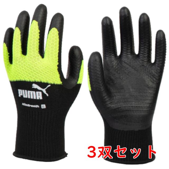 【サイズ:XL】 3双セット プーマ 作業用手袋 背抜き手袋 PUMA WORK GLOVES Nito Breath ニトブレス手袋 PG-1530 ブラック&イエロー(商品コード:720122)