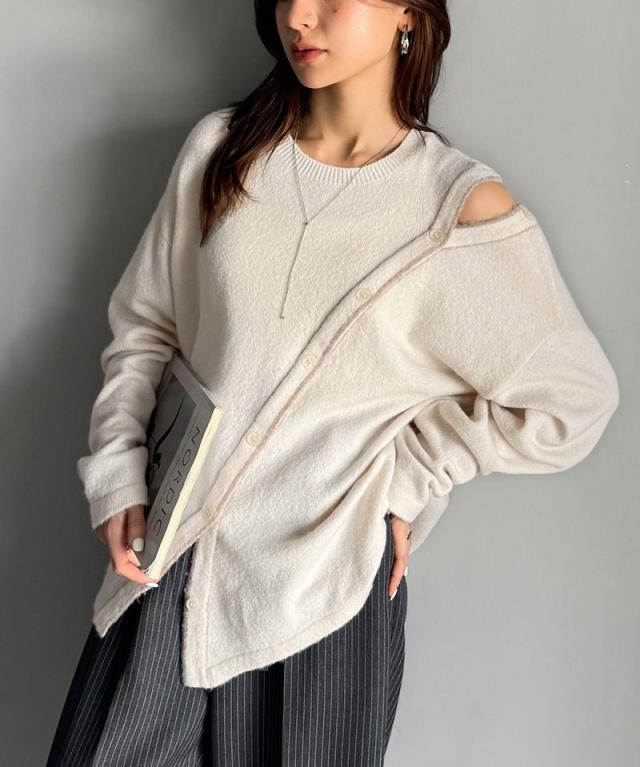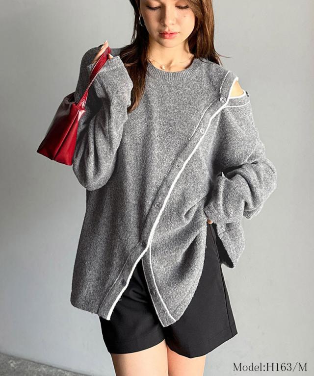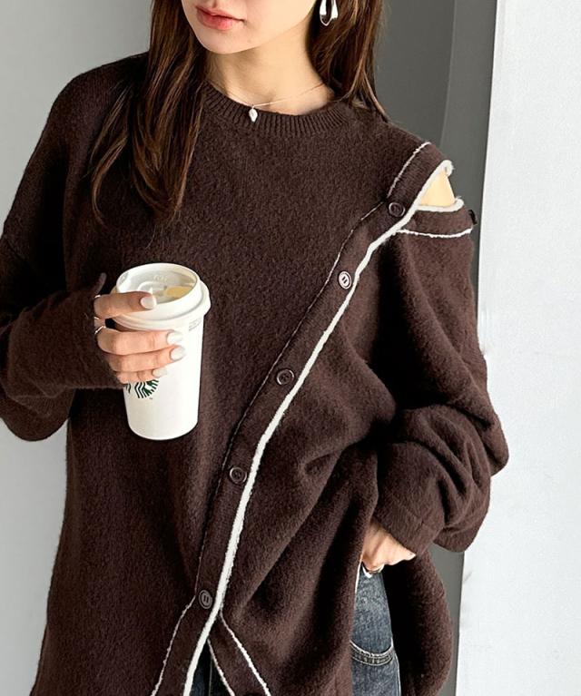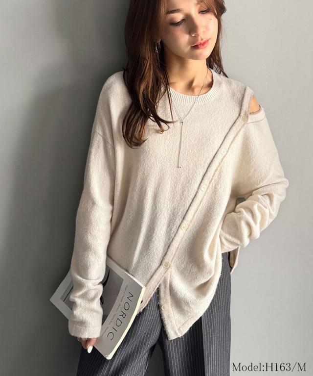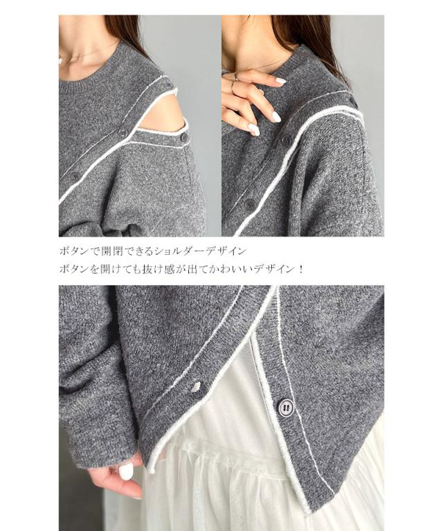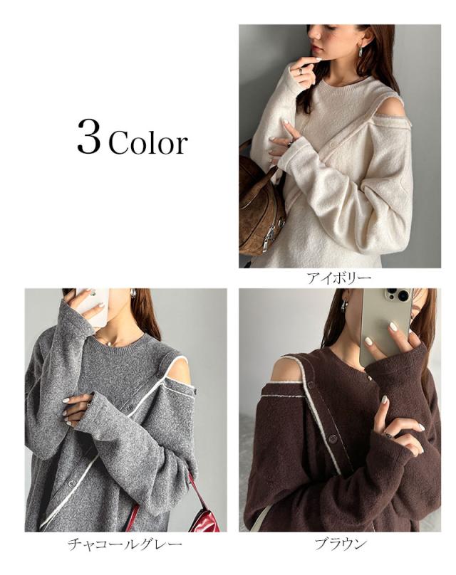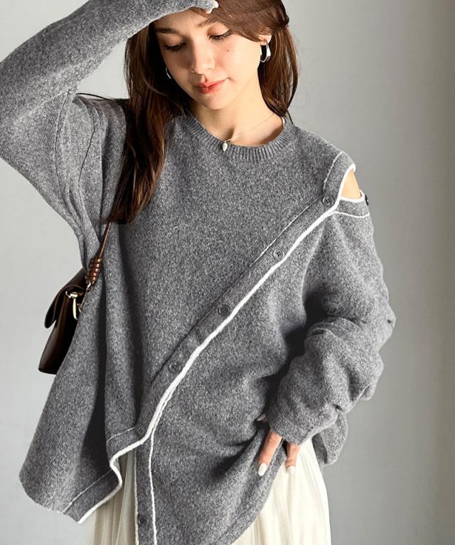 クラシカルエルフ秋新作 mily bilet ニット レディース 長袖 トップス プルオーバー ふわもち 肩見せ 2WAY アシメデザイン 斜め切り替え 配色ライン ゆったり感 ヘルシー カジュアル きれいめ ガーリー トレンド感 日常使い 大きいサイズ 2025aw mi1029161