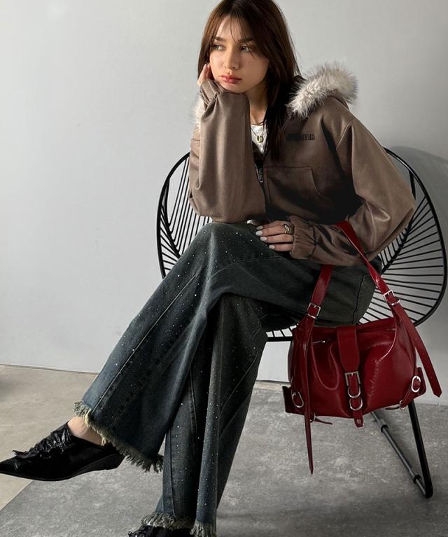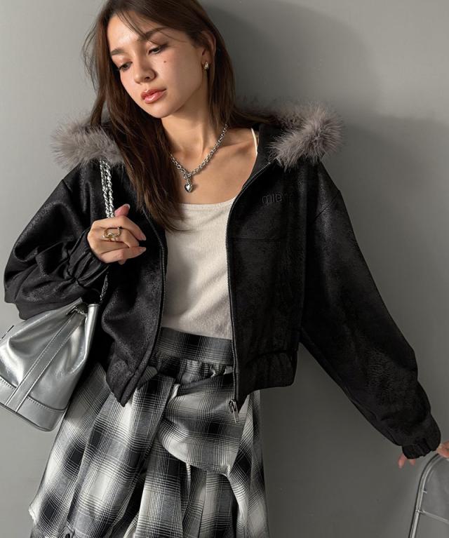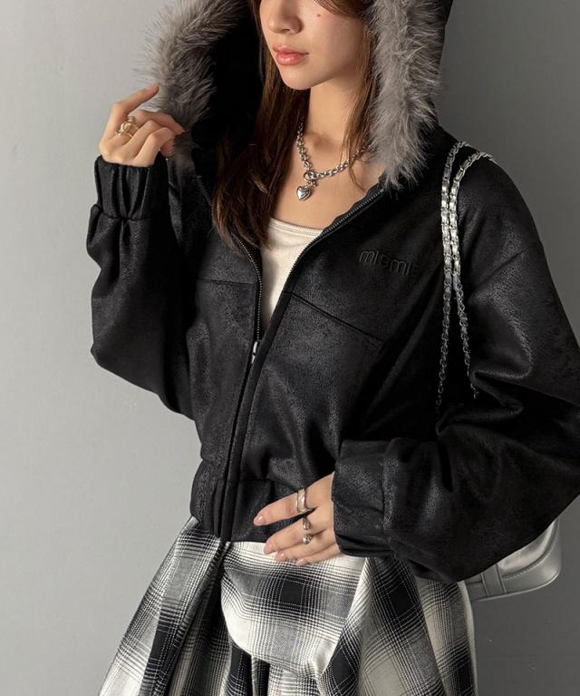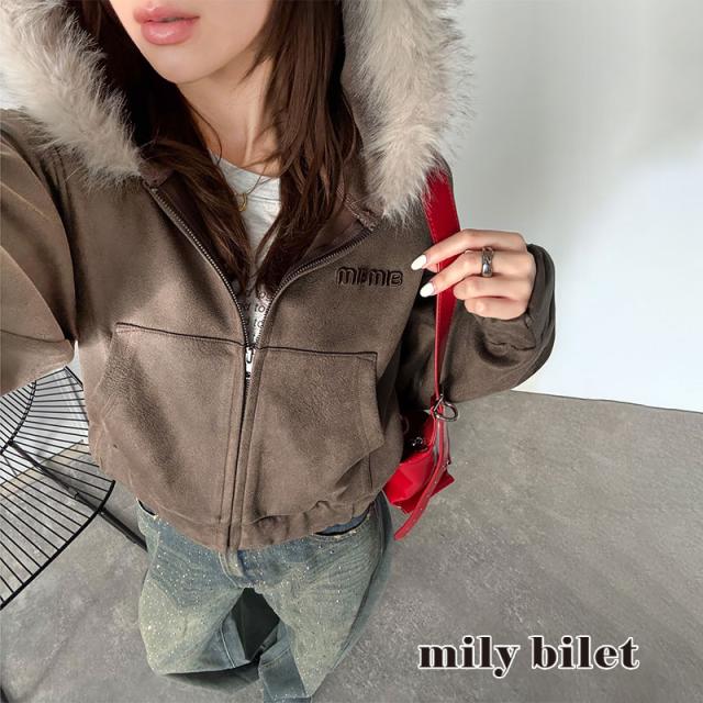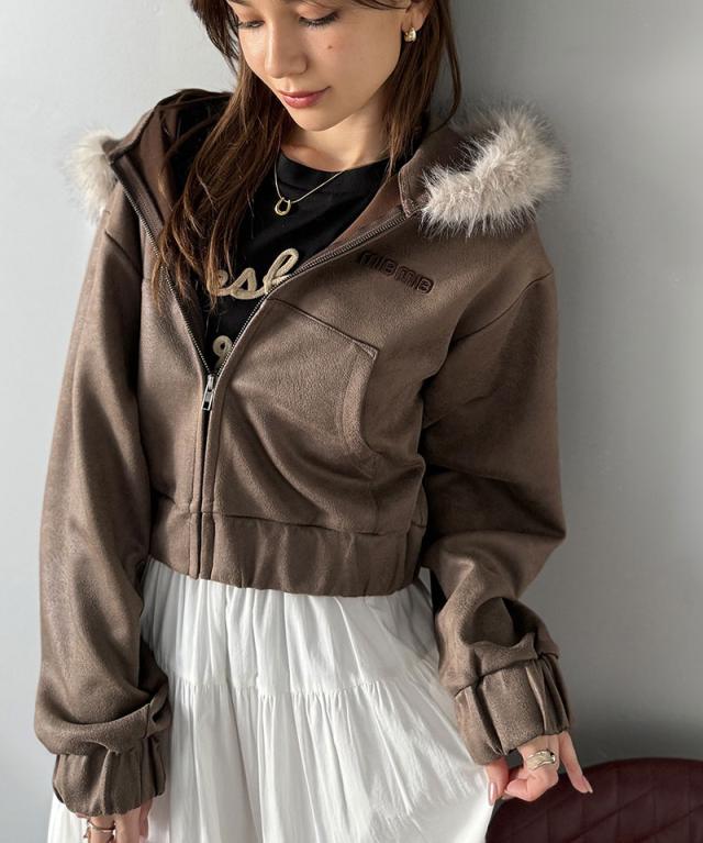 クラシカルエルフ冬新作 mily bilet パーカー レディース おしゃれ トップス フードファー付き スエードポンチパーカー ショート丈 主役級 ふわっと 華やか カッコ可愛い スエード調 短め丈 スタイルアップ 立体刺繍 コンパクト 大きいサイズ 2025aw mi1359029