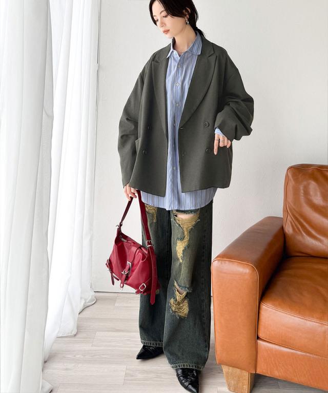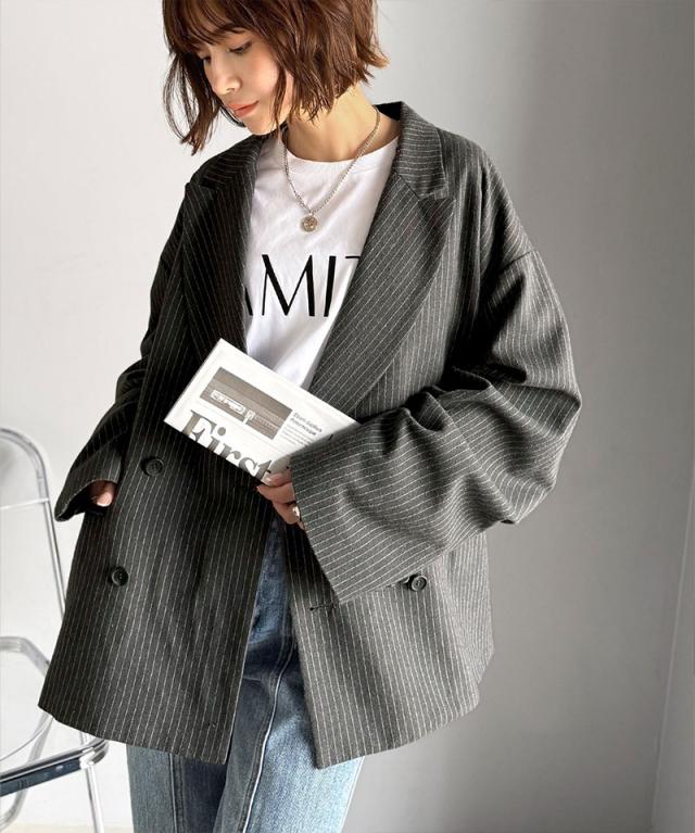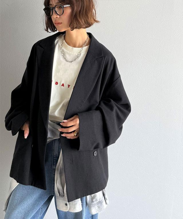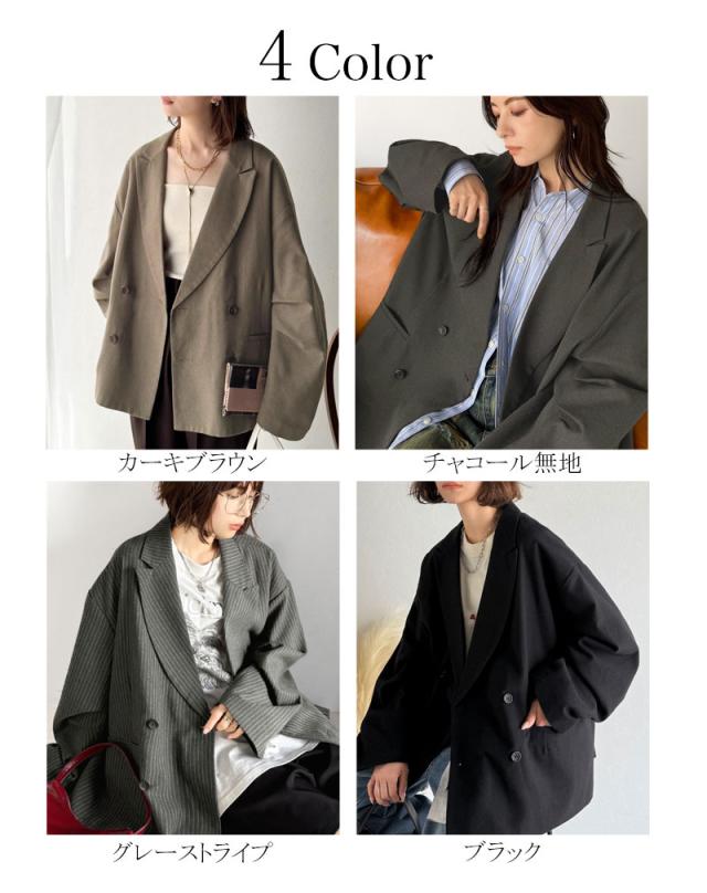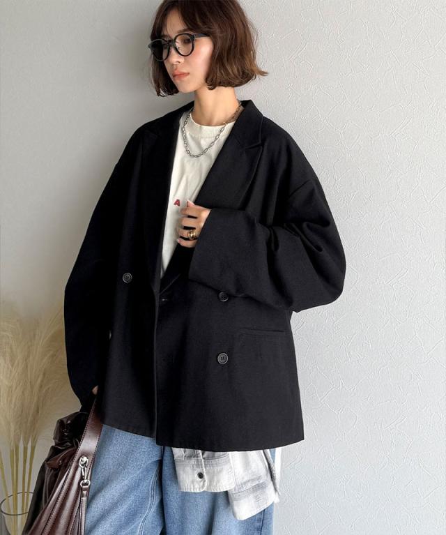 クラシカルエルフ冬新作 アウター ジャケット レディース 袖 タック ダブル ボタン テーラード JK 長袖 羽織り 着回し ロングシーズン レイヤードコーデ ゆるっと オーバーサイズ 大きいサイズ 2025aw ce1070170