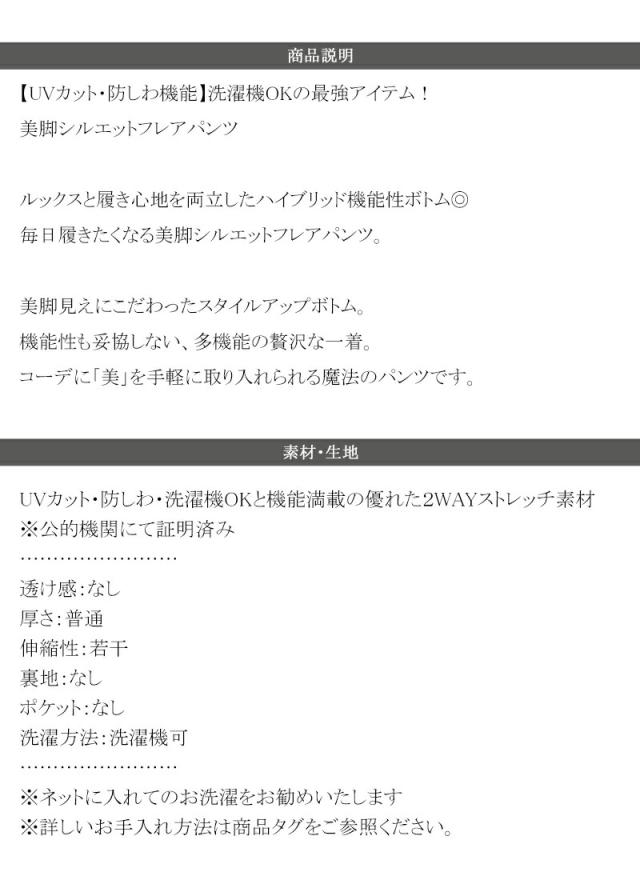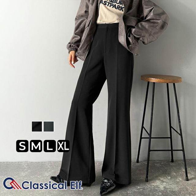 クラシカルエルフ冬新作 ボトムス レディース 秋冬 パンツ 【UVカット・防しわ機能】 洗濯機 OK 美脚シルエット フレアパンツ スラックス 大きいサイズ 2025aw ce0940250