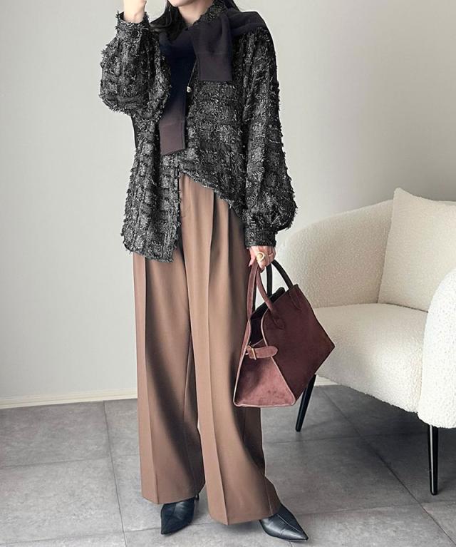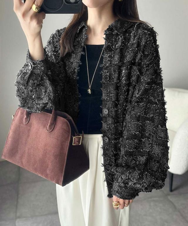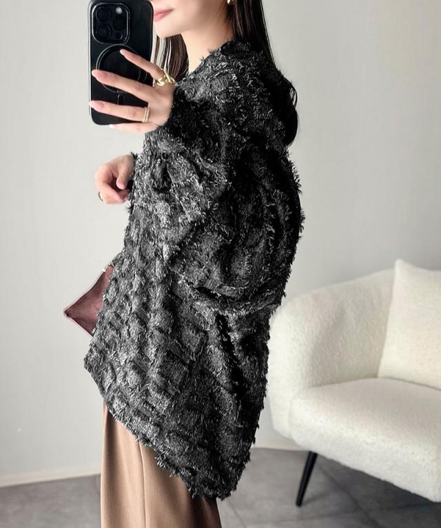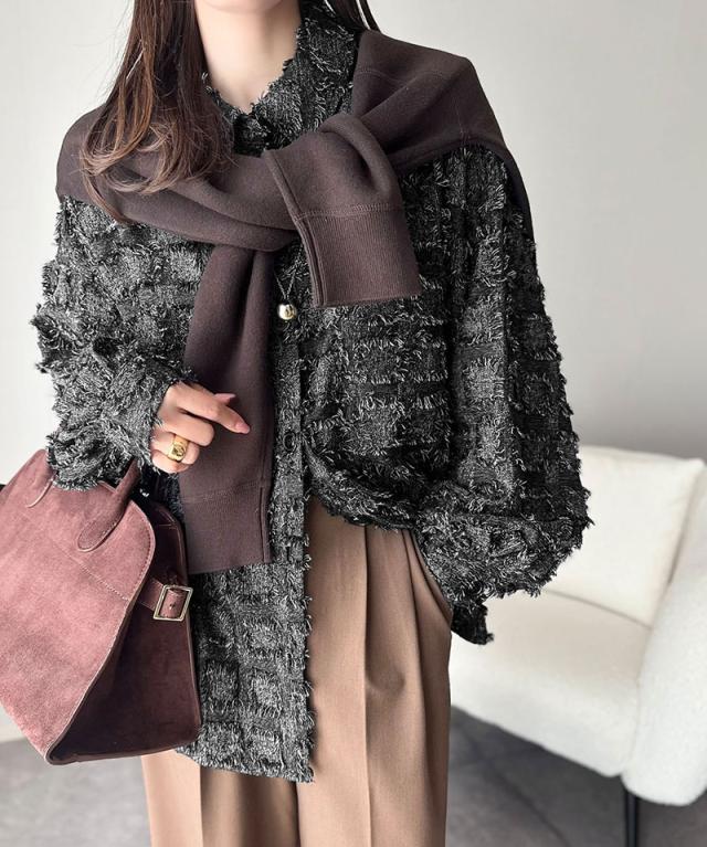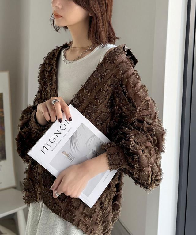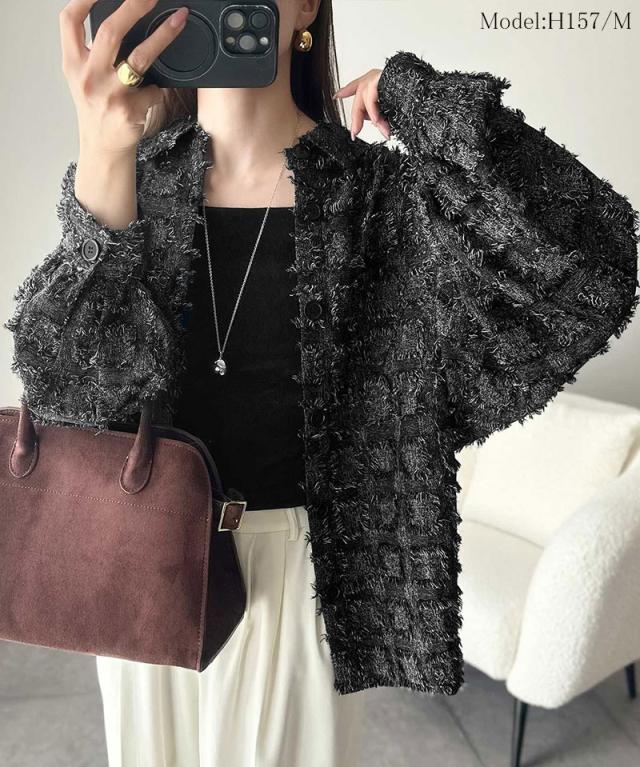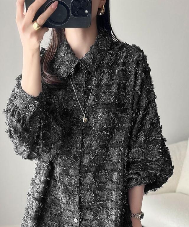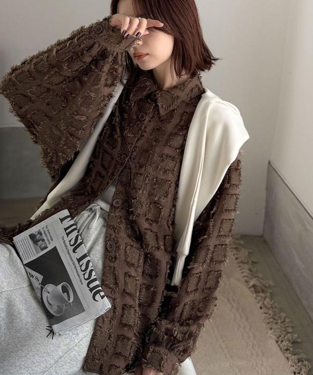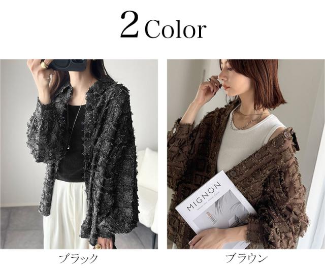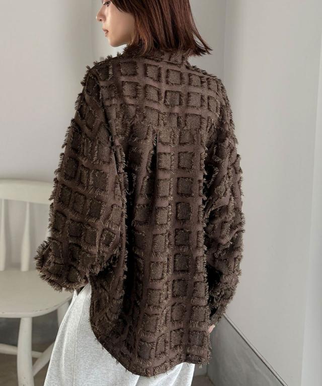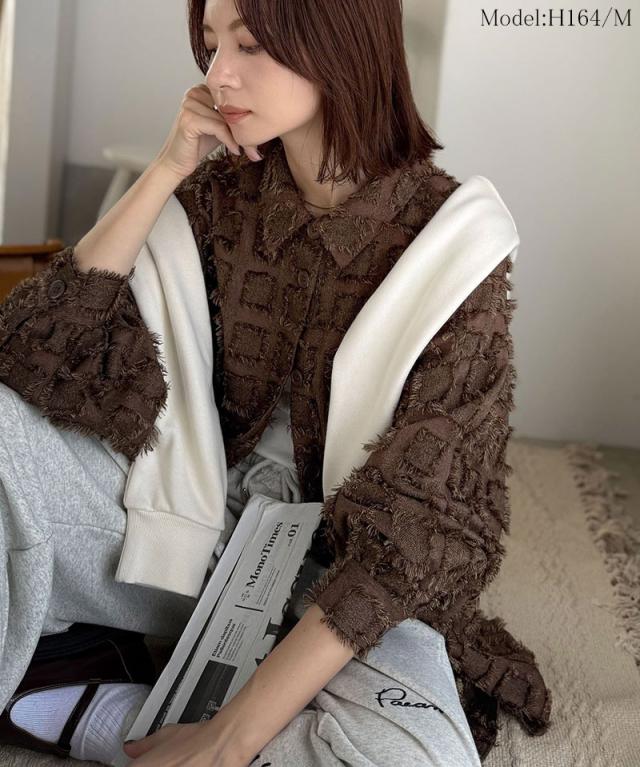 クラシカルエルフ秋新作 レディース 長袖 ブラウス シャツ トップス フリンジチェック ジャガード こなれ感 ゆるっとシルエット 重ね着 羽織り 大人可愛い ゆったりサイズ 華奢 アウター デイリー お出かけ 大きいサイズ 2025aw ce1010503
