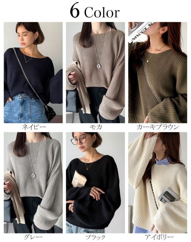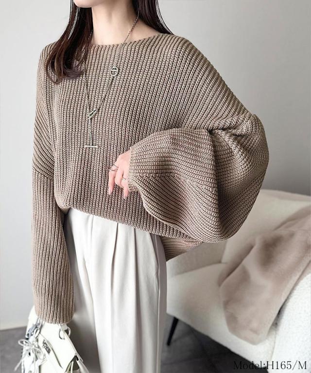 クラシカルエルフ冬新作 ニット レディース 長袖 トップス 立体スリーブ コクーンスリーブ シンプル プルオーバー クロップド丈 ゆるっと オーバーサイズ 大きいサイズ 2025aw ce1050316