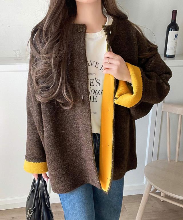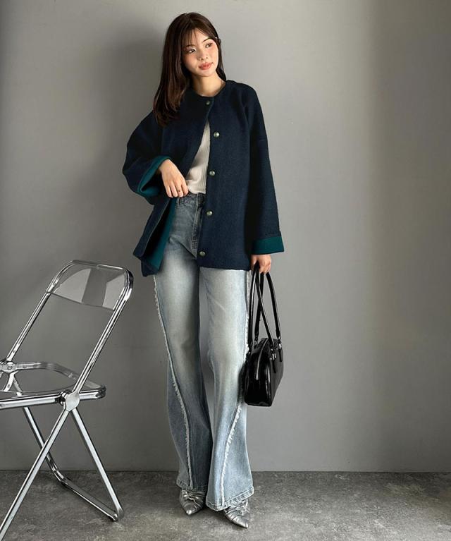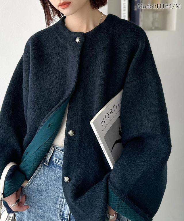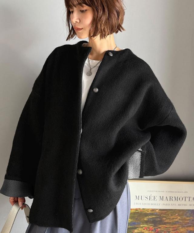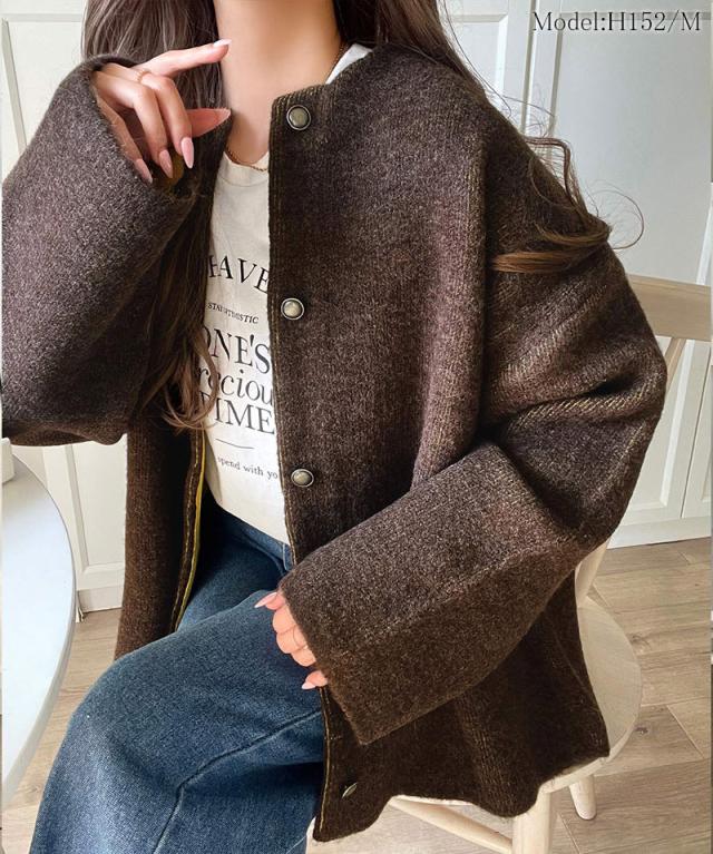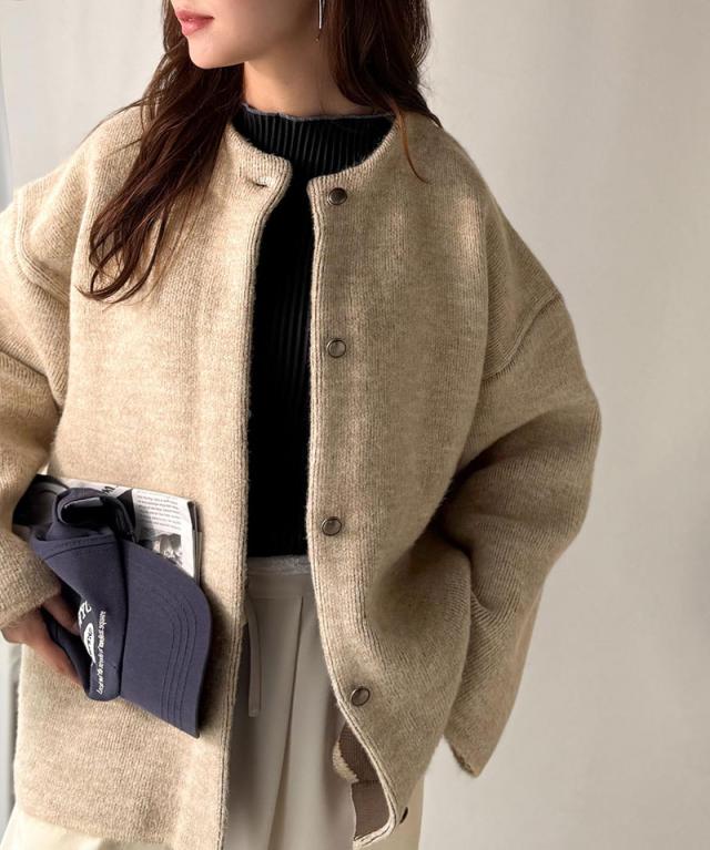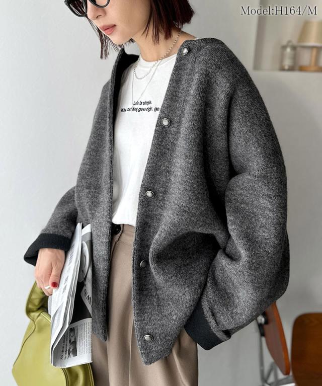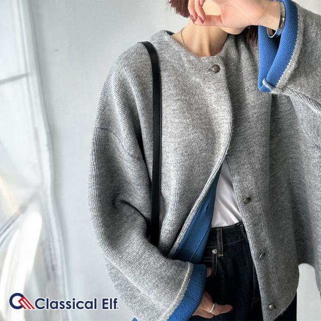 クラシカルエルフ秋新作 カーディガン レディース トップス ニット Wフェイス シンプル 上品 すっきり 程よい厚み 立体感 ほんのり起毛感 スポンディッシュ糸 ベーシック カジュアル きれいめ 大きいサイズ 2025aw ce1380005