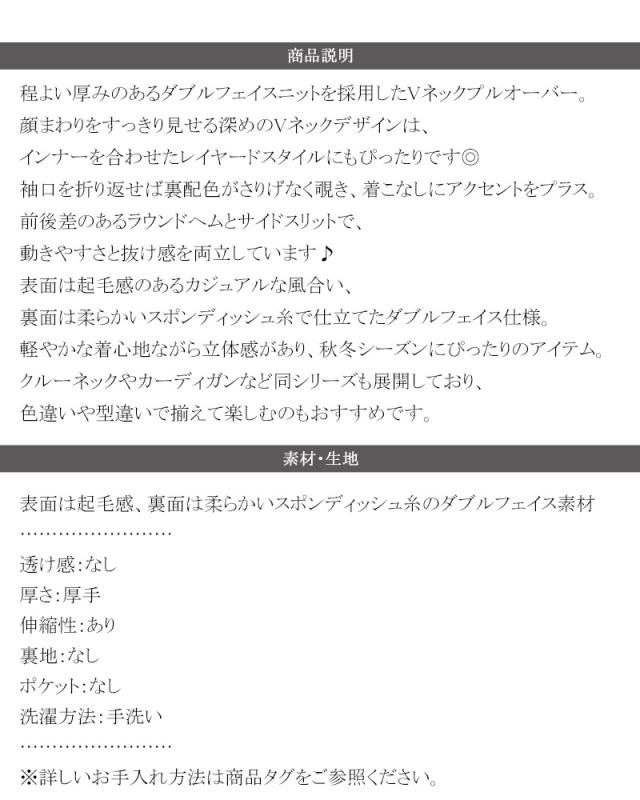程よい厚みのあるダブルフェイスニットを採用したVネックプルオーバー。