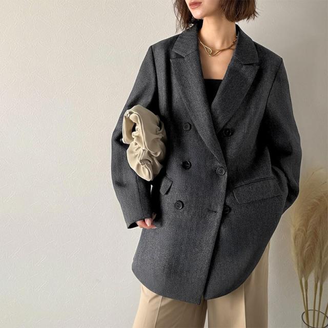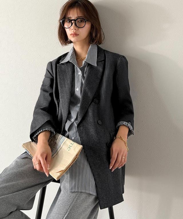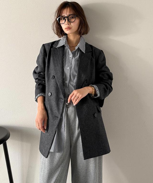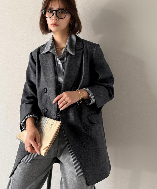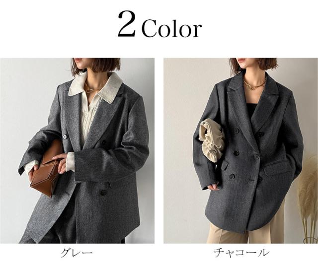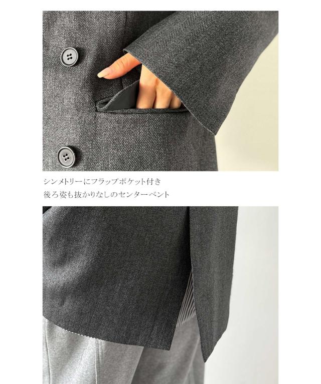 クラシカルエルフ秋新作 Classical Evon アウター レディース ジャケット きれいめ ダブル ジャケット 3段ボタン ヘリンボーン シック ゆとり モード 上品 オーバーサイズ こなれ感 クラシカル ウールライク オフィス 大きいサイズ 2025aw ev1110139