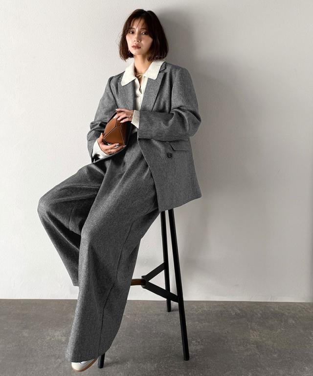 同素材のタックパンツと合わせれば洗練されたセットアップコーデが完成します。