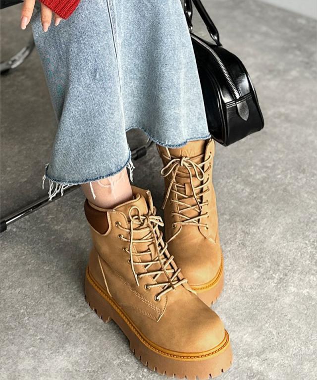 クラシカルエルフ冬新作 javaジャバコラボ シューズ ブーツ レディース ボリューム感でスタイルアップを叶える♪ヌバック調素材7ホール撥水加工ブーツ大きいサイズ 2025aw jv1129026