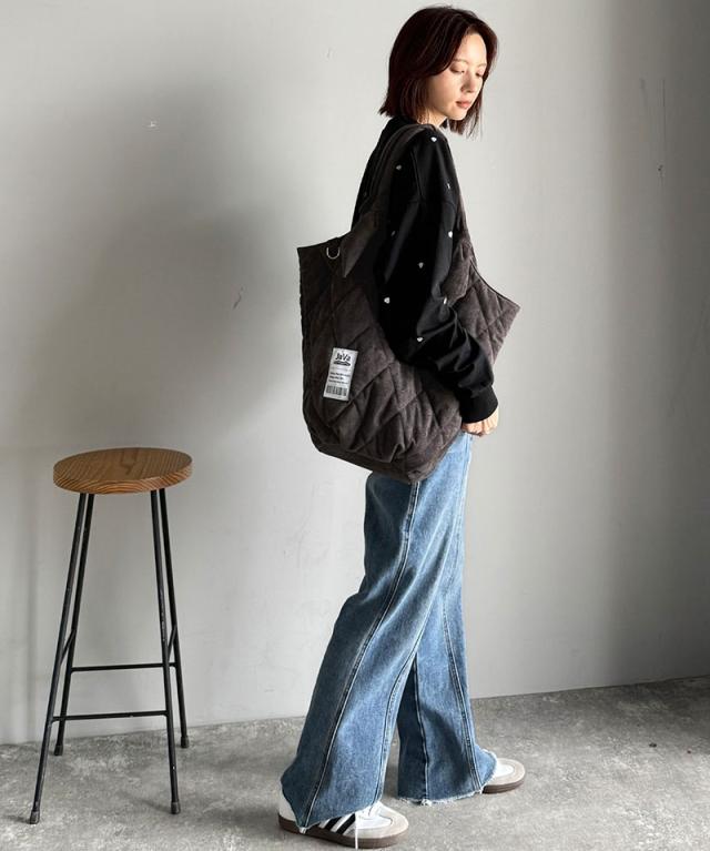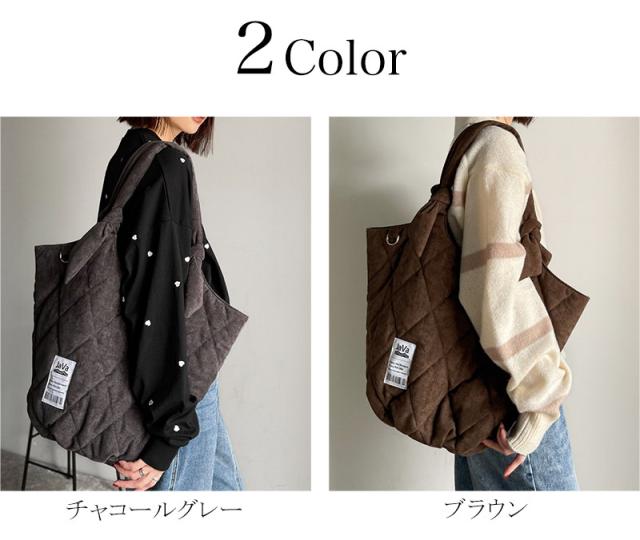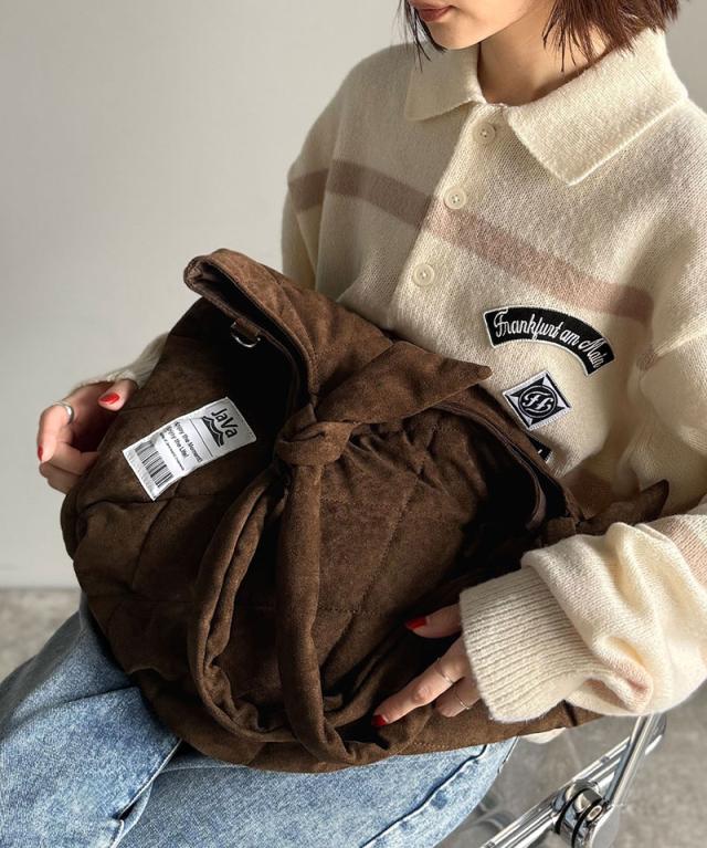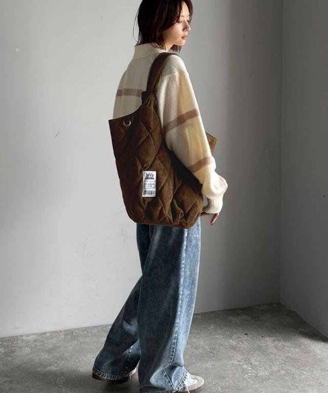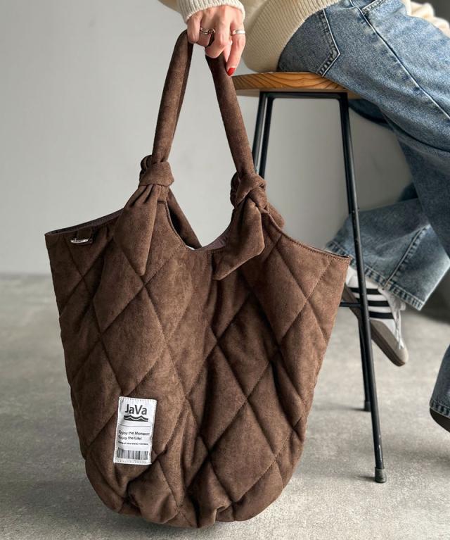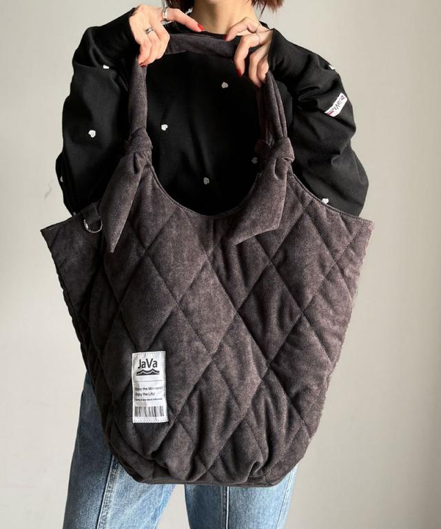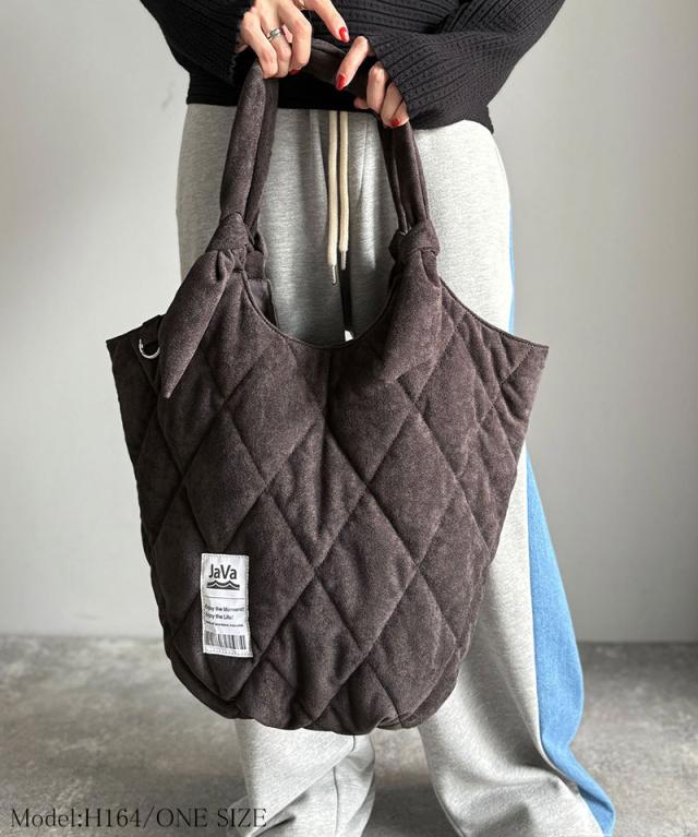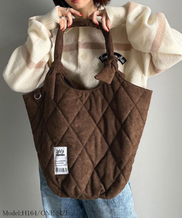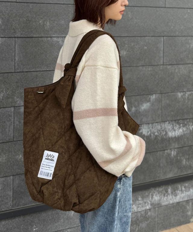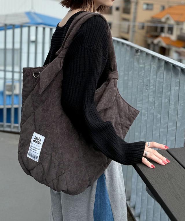 クラシカルエルフ冬新作 java ジャバコラボ トートバッグ レディース 大きめ バッグ スウェードライク キルティング チャームフック付き ふわもち 大容量 ロゴ刺繍 ビッグサイズ ショルダー長さ調節可能 金属バックル お出かけ 大きいサイズ 2025aw jv1179069