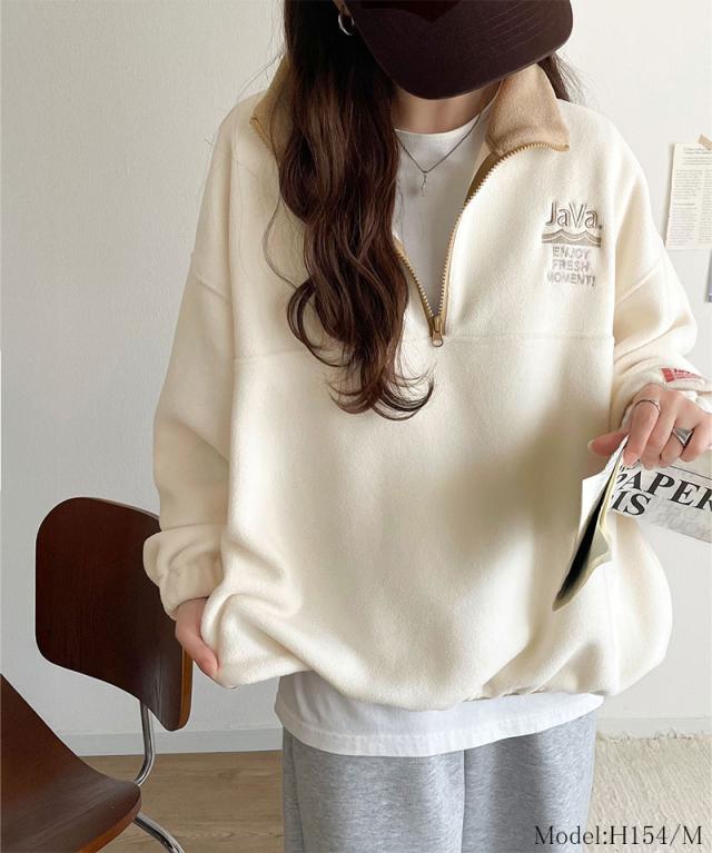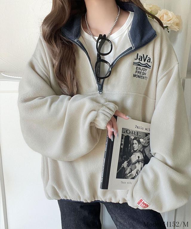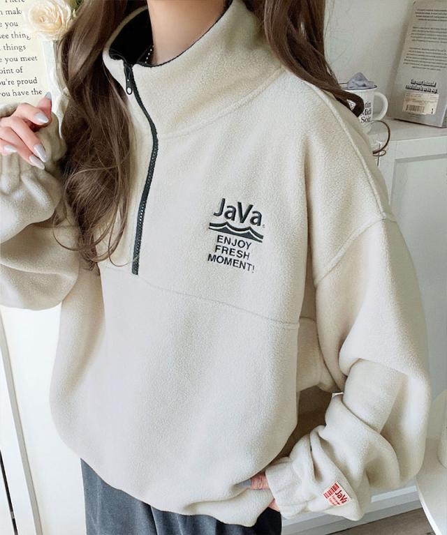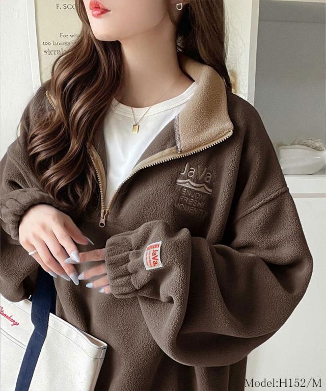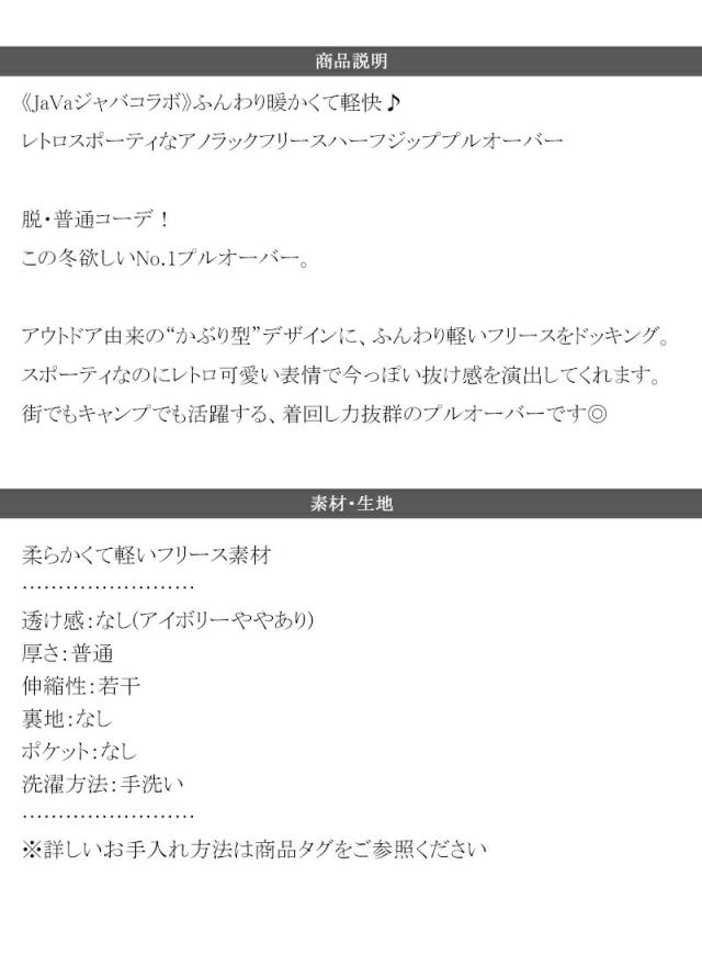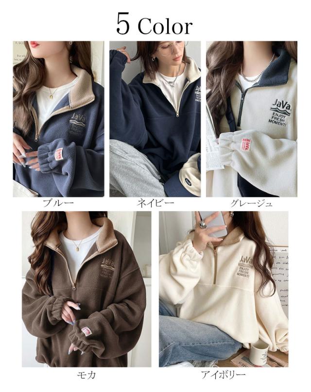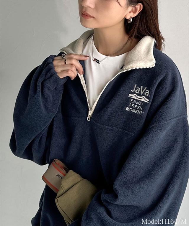 クラシカルエルフ冬新作 java ジャバコラボ スウェット レディース トップス ふんわり 暖か 軽快 レトロ スポーティ アノラックフリース ハーフジップ プルオーバー 大きいサイズ 2025aw jv1260483