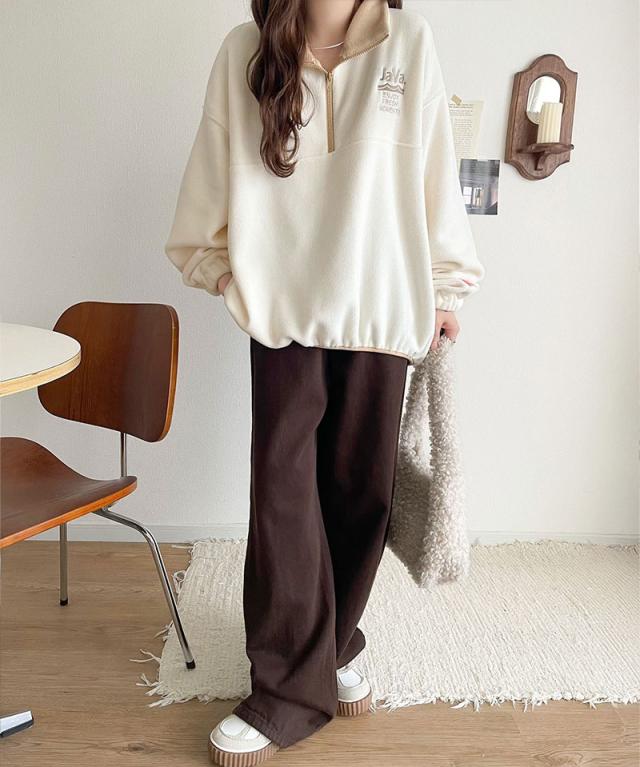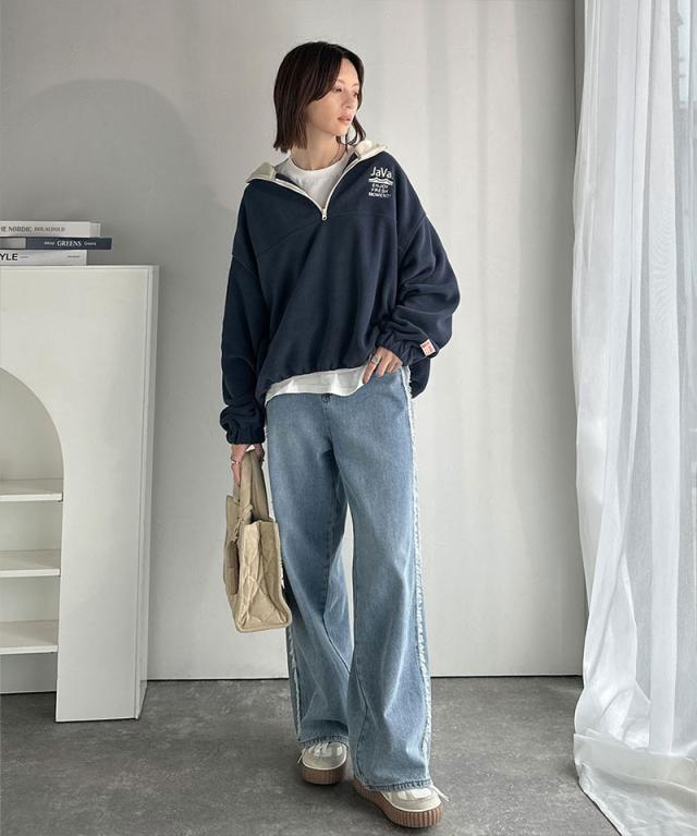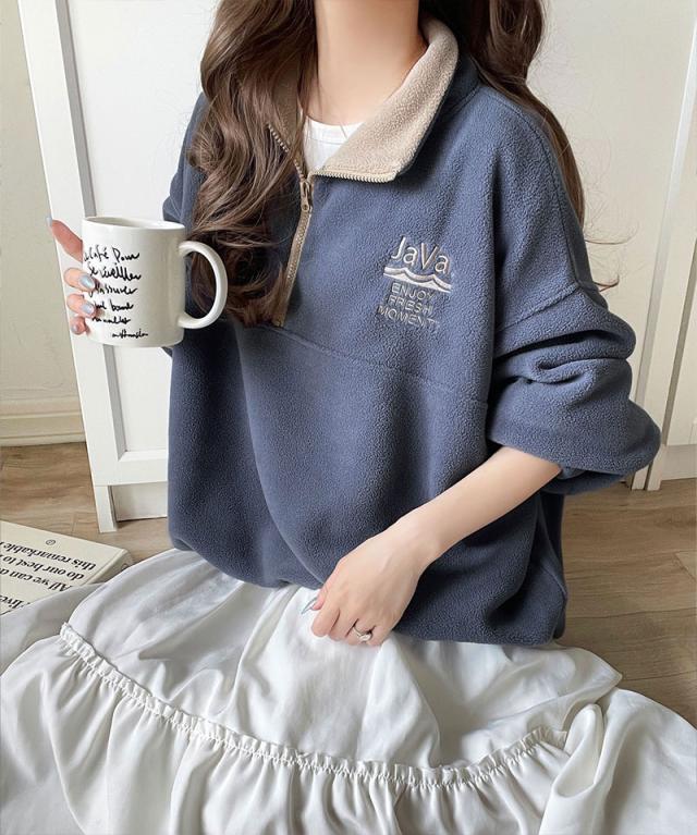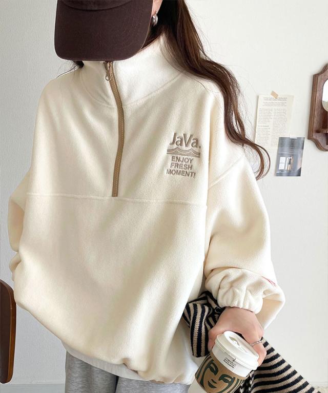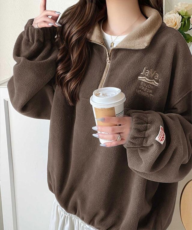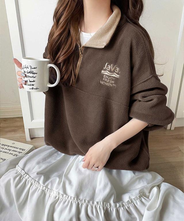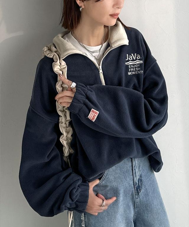 クラシカルエルフ冬新作 java ジャバコラボ スウェット レディース トップス ふんわり 暖か 軽快 レトロ スポーティ アノラックフリース ハーフジップ プルオーバー 大きいサイズ 2025aw jv1260483