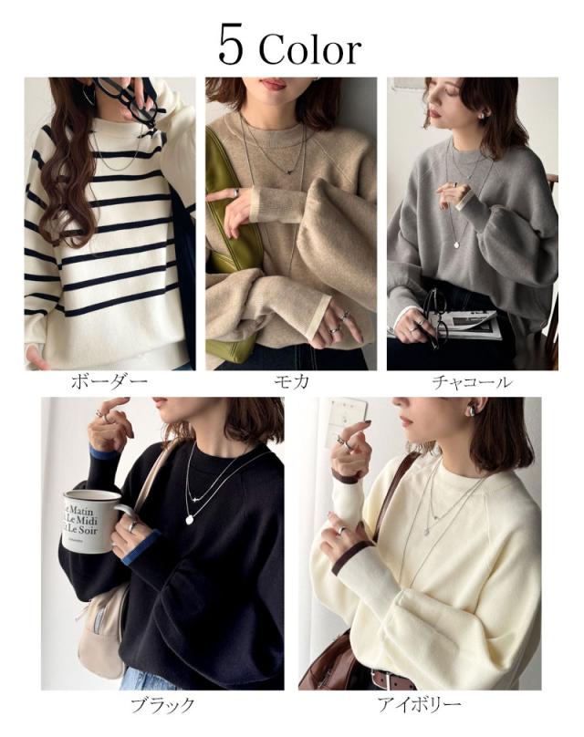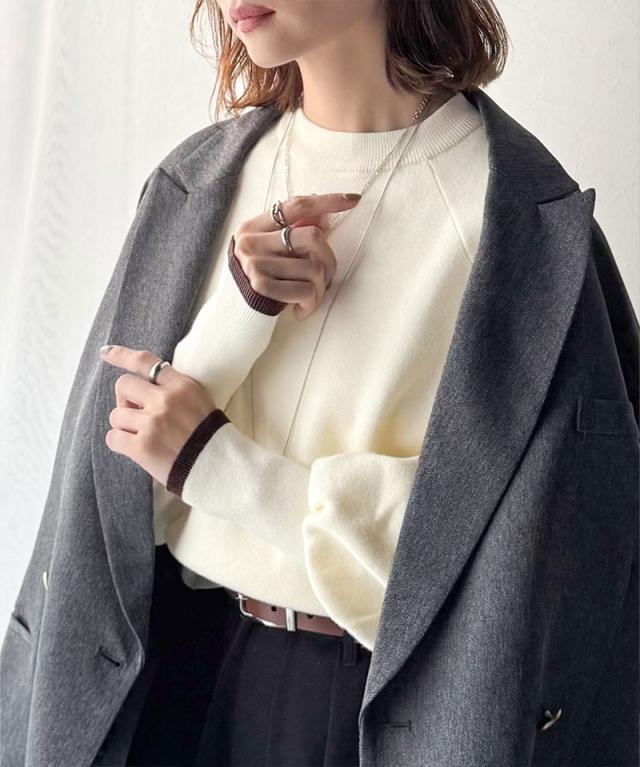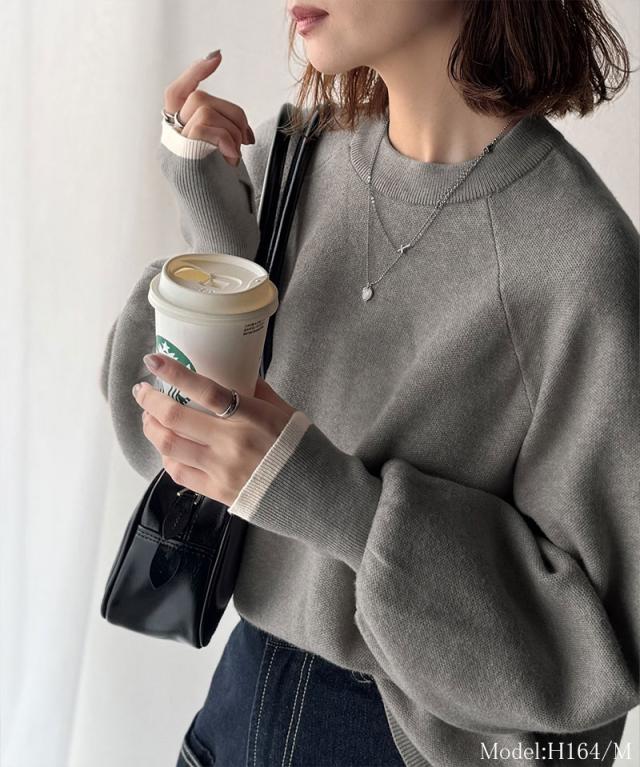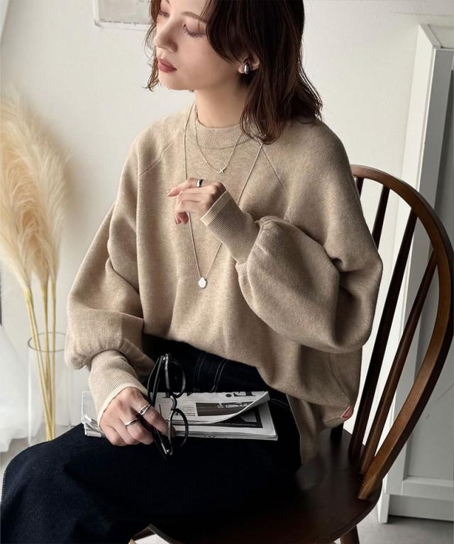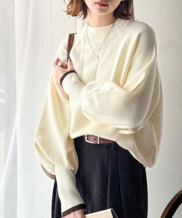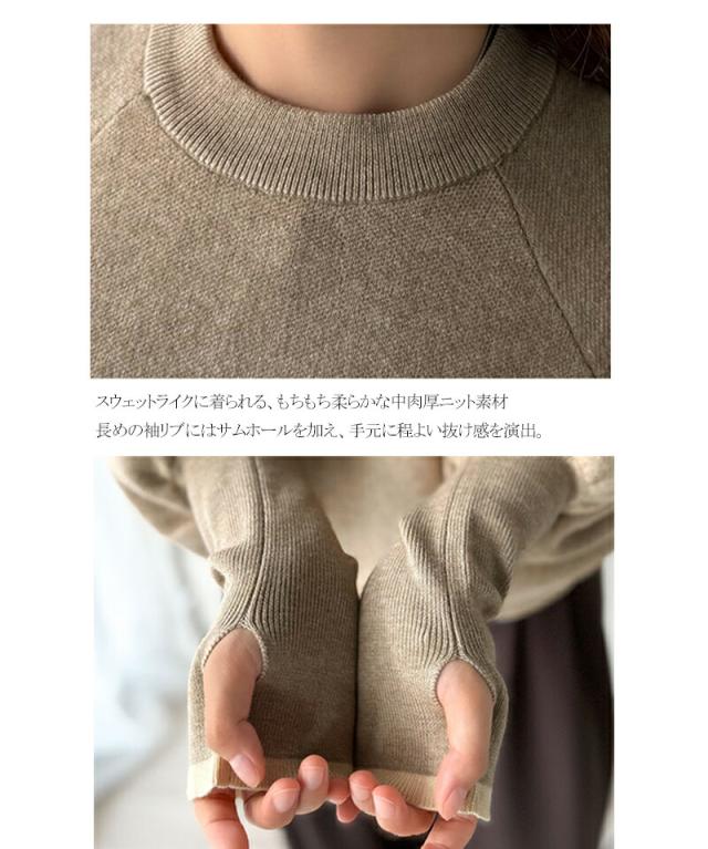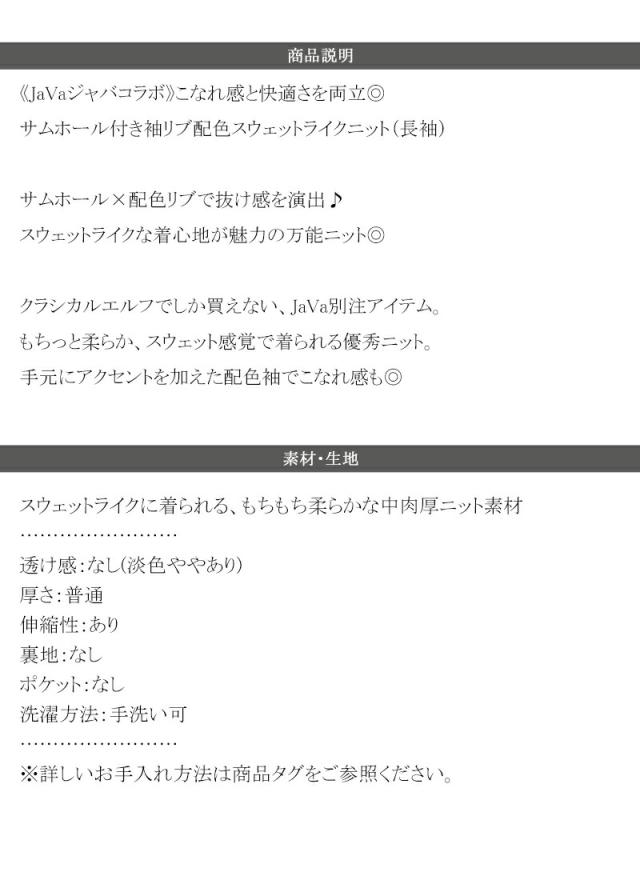 クラシカルエルフ冬新作 java ジャバコラボ ニット レディース 長袖 トップス サムホール 付き 袖 リブ 配色 スウェットライクニット 長袖 ゆるっと オーバーサイズ 大きいサイズ 2025aw jv1380009