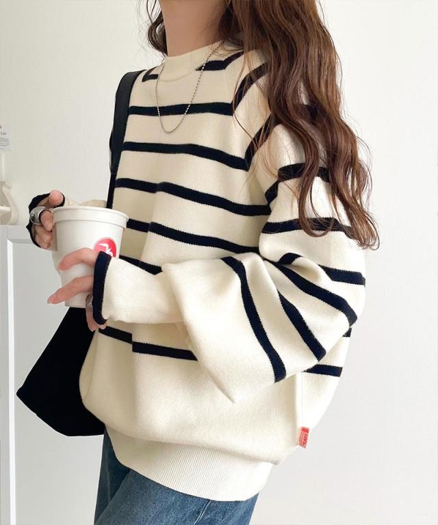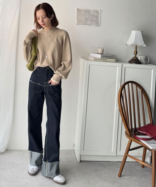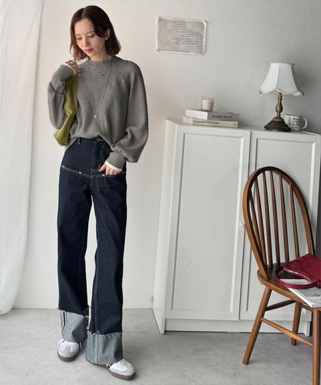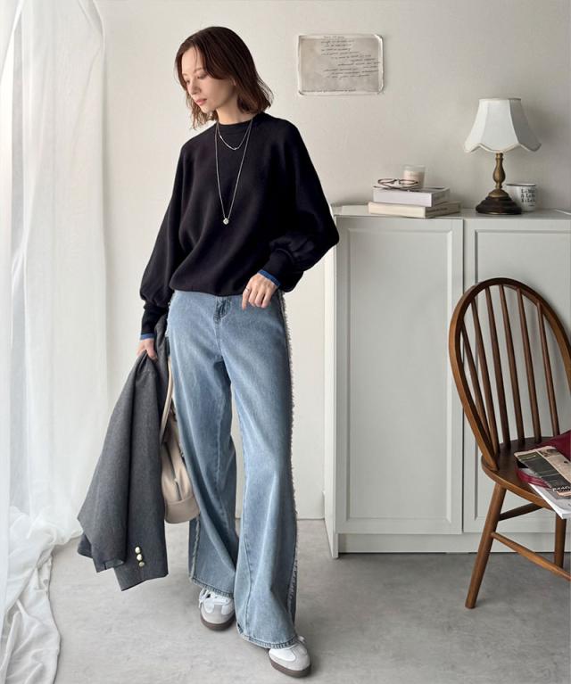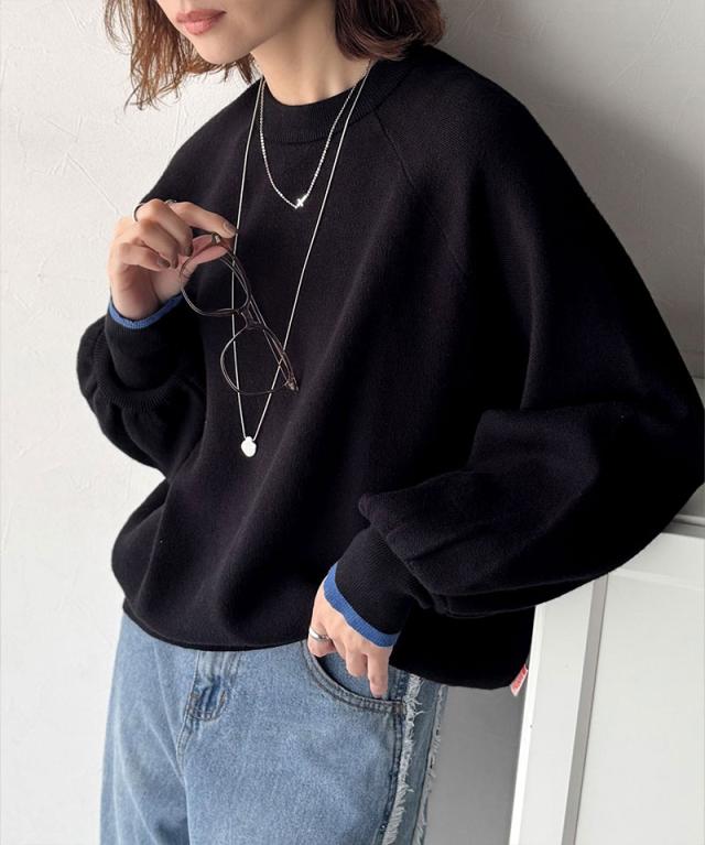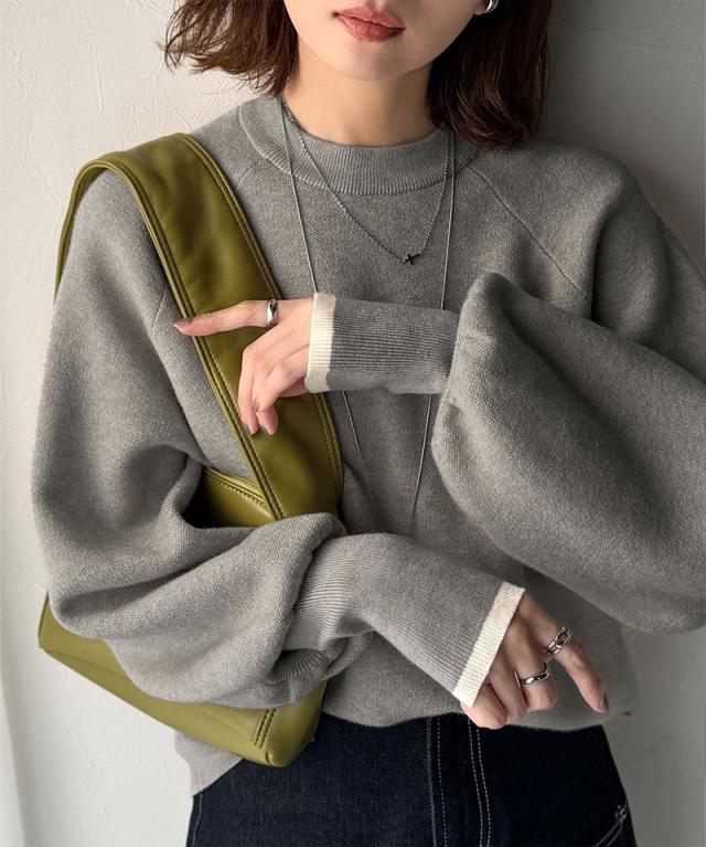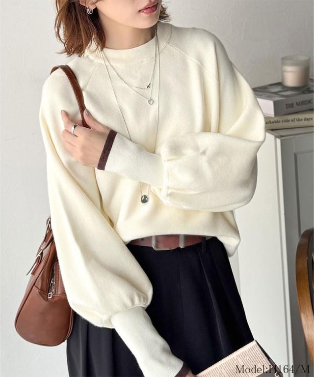 クラシカルエルフ冬新作 java ジャバコラボ ニット レディース 長袖 トップス サムホール 付き 袖 リブ 配色 スウェットライクニット 長袖 ゆるっと オーバーサイズ 大きいサイズ 2025aw jv1380009