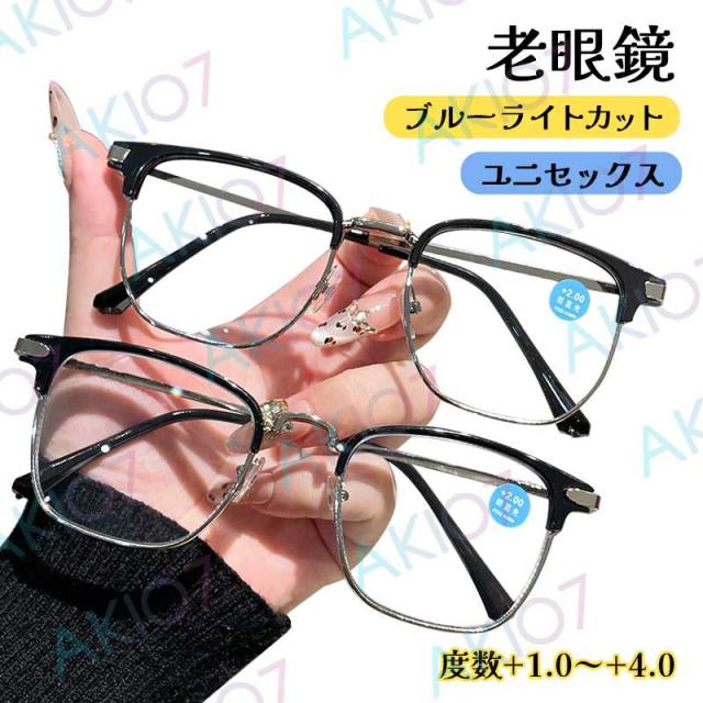 【度数+1.0〜+4.0選択可・ケース付き】老眼鏡 ブルーライトカット 老眼用メガネ おしゃれ 紫外線カット 眼鏡 メンズ レディース かっこいい 男女兼用 軽量 敬老の日 母の日 父の日 プレゼント