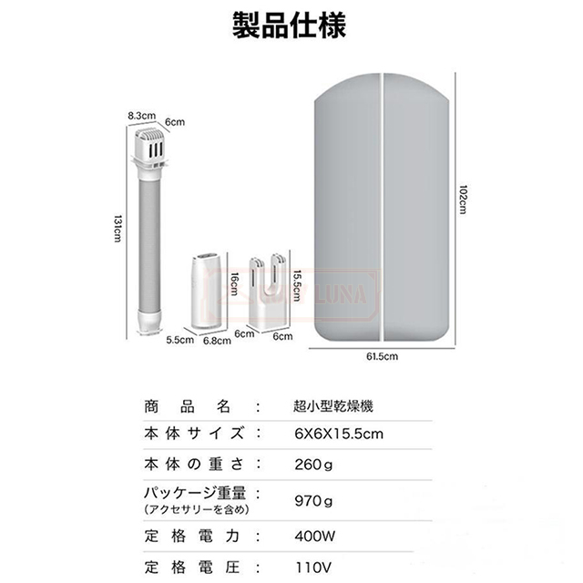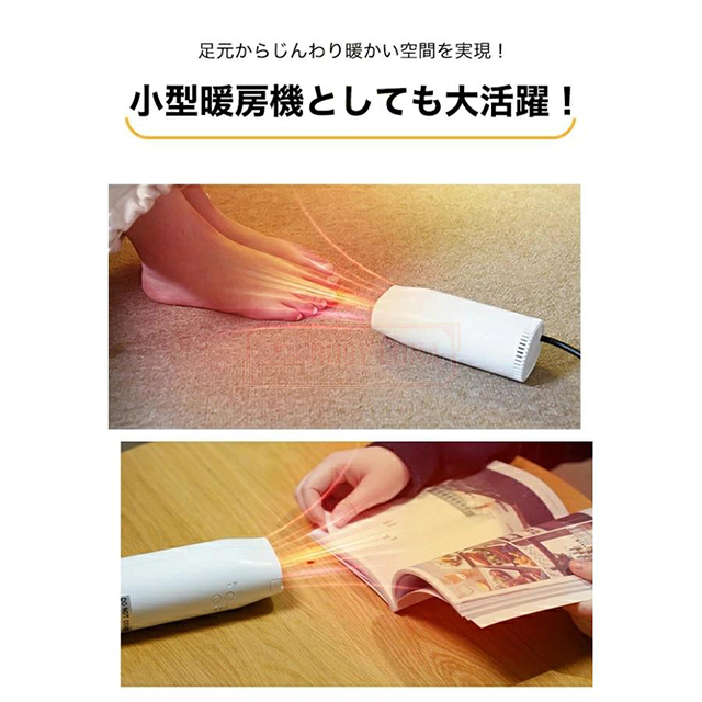 ◆◆商品について◆◆品名◆衣類乾燥機素材◆ABS+PP+電子部品サイズ◆6.8*5.5*16CM◆製品の重量:約970gカラー◆ホワイト仕樣◆定格出力:400w◆定格電圧:110V【一台多役乾燥機】◆冬場は布団を温めるほか、梅雨時には布団を乾かすほか、部屋干しの洗濯物を乾かすのにも使えます。寝る前に温めておいた布団もふかふかで、気持ちよさそうに眠っています。「布団」の他に「靴」乾燥も可能で便利な1台3役。スニーカーやブーツ、革靴にも対応。【タイマー機能搭載】◆このくつ乾燥機は、異なる種類の靴に対して異なる作業時間,を設定することができます。異なるニーズに応じて作業時間を設定することができます。【過熱防止】◆安全な温度を保つよう自動制御する温度過昇防止装置により、内部温度が上がりすぎた場合は自動的に電流を完全遮断して運転停止、安心してお使いいただけます。