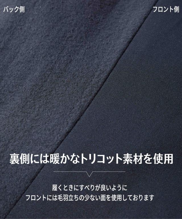 表生地は綿100%ではき心地も快適。起毛裏地が付いて暖か。冬のお出かけはこれでキマリ!