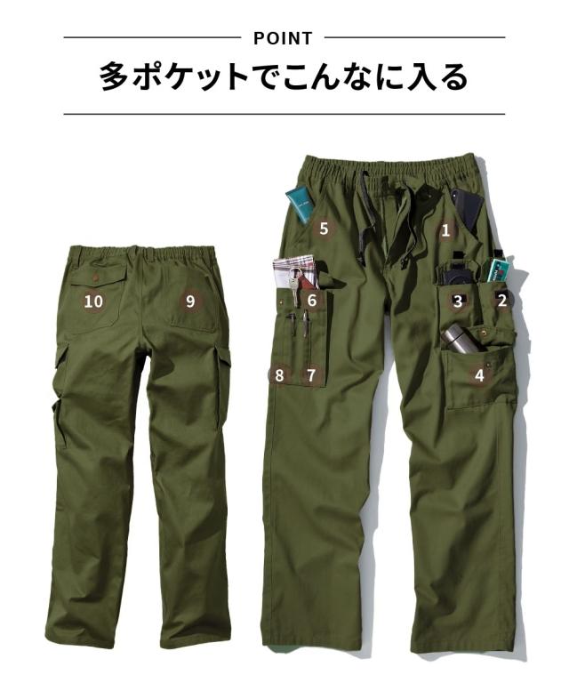 ポケットが多いほど便利なボトムスに、大満足の10ポケット!