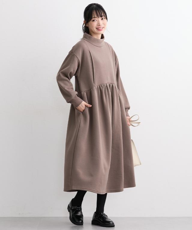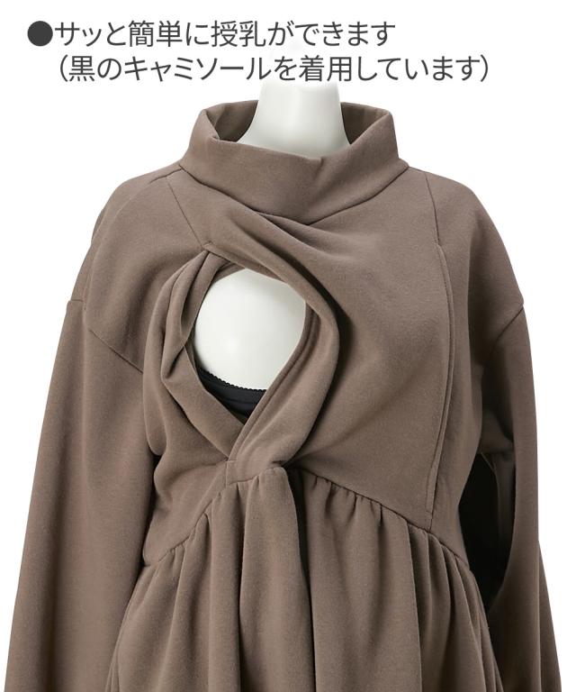 マタニティ ワンピース 授乳服 ママ ウェア あったか裏起毛 ウエスト ギャザーモックネック 産前 産後 冬 産前 産後 | 3L/4L | ニッセン nissen