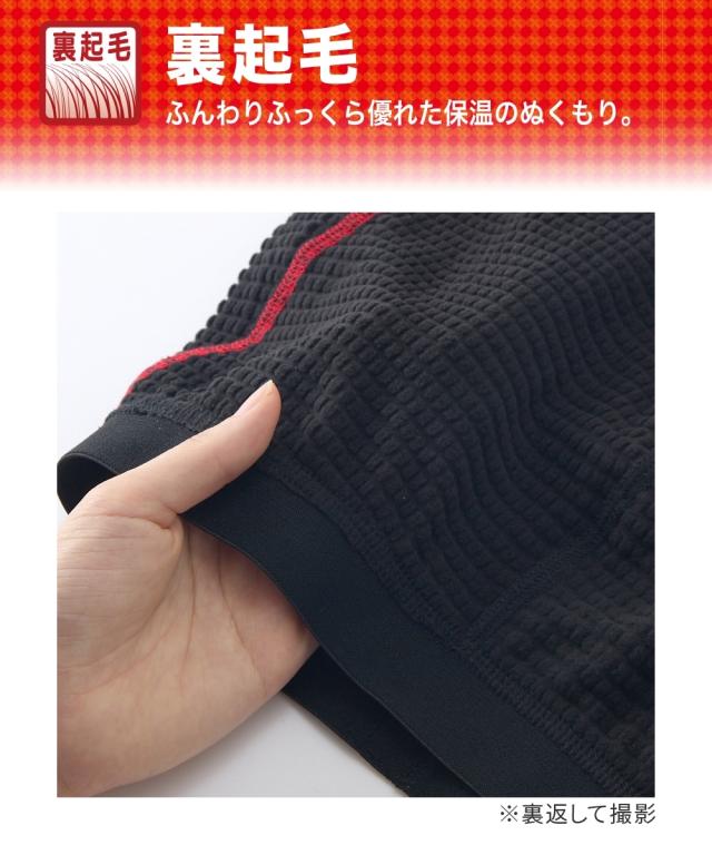 裏地がブロック調の起毛で凹凸感があり、熱がこもりやすく暖かさが持続します。体にフィットした動きやすい素材です。