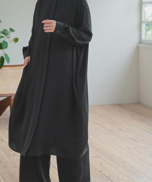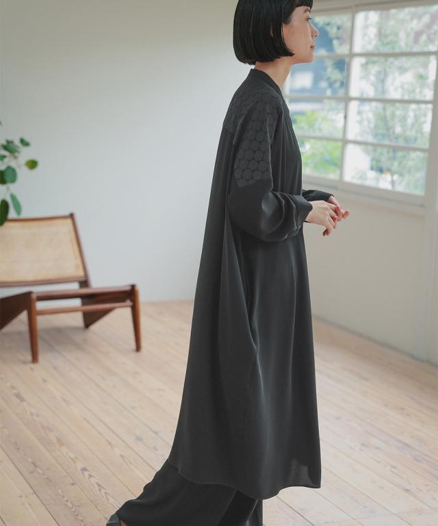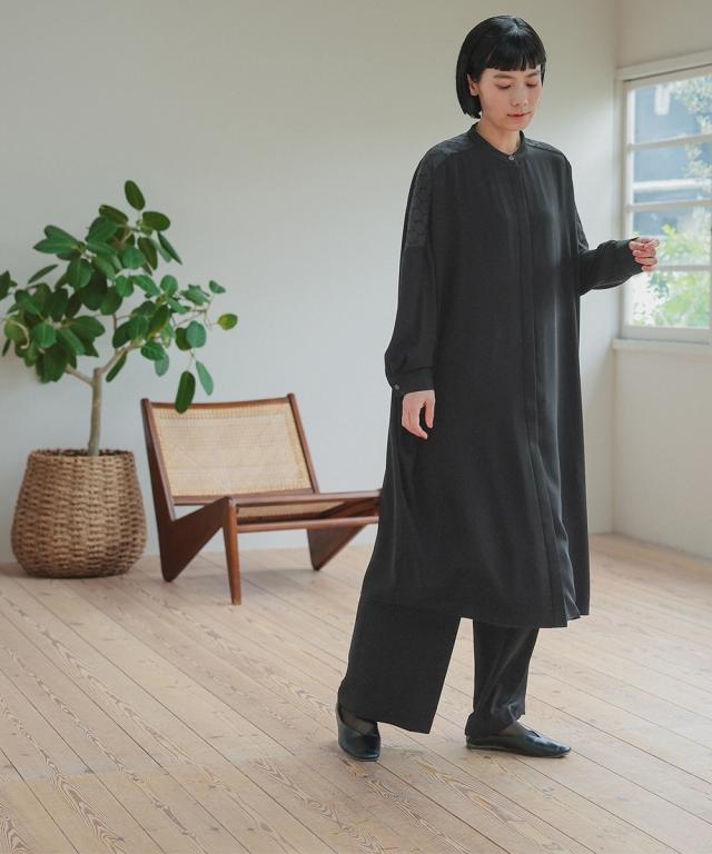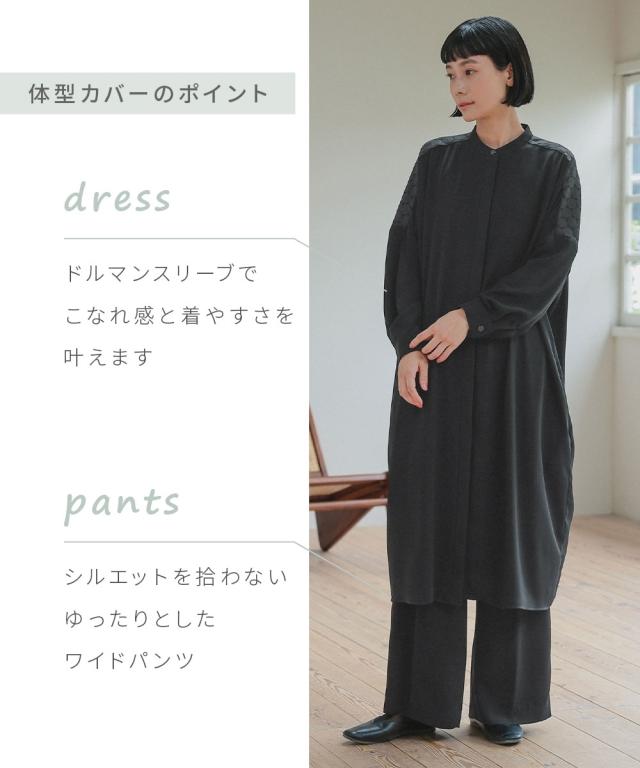 ワンピースは比翼仕立てで、きちんと感もありながら着用しやすい仕様に