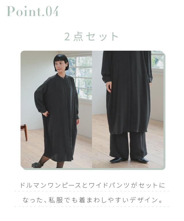 【喪服・礼服】袱紗も入る多ポケット仕様 洗える防しわ水玉レースドルマンスリーブワンピースワイドパンツセットアップ 〔Neina〕