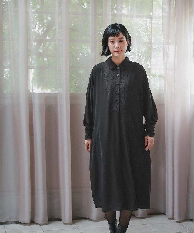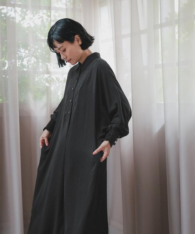 ワンピースは程よいゆったりシルエットで、リラックスした雰囲気に