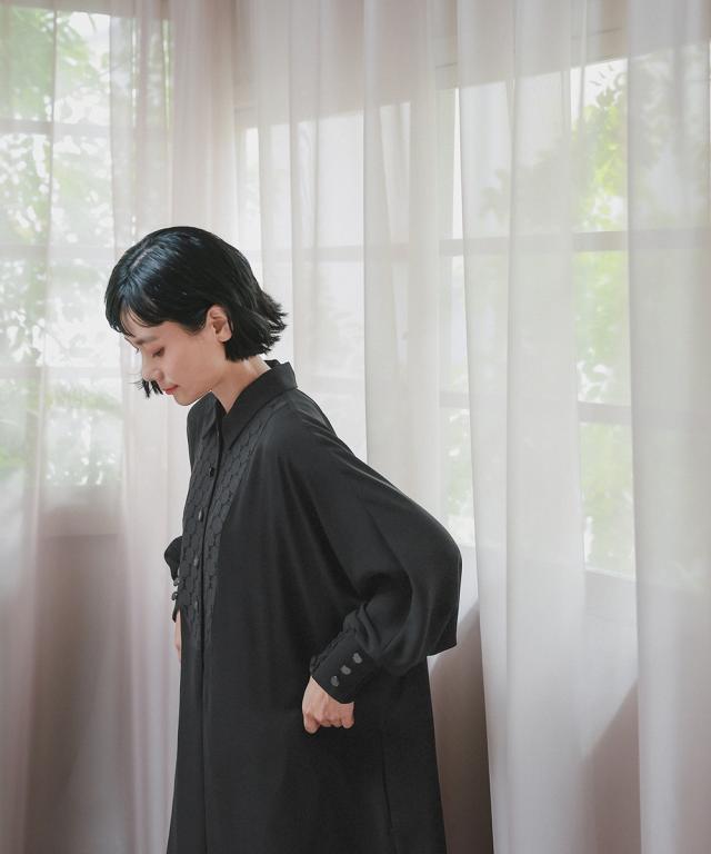 ブラックフォーマル生地(漆黒)を使用、きちんと感のある装いに