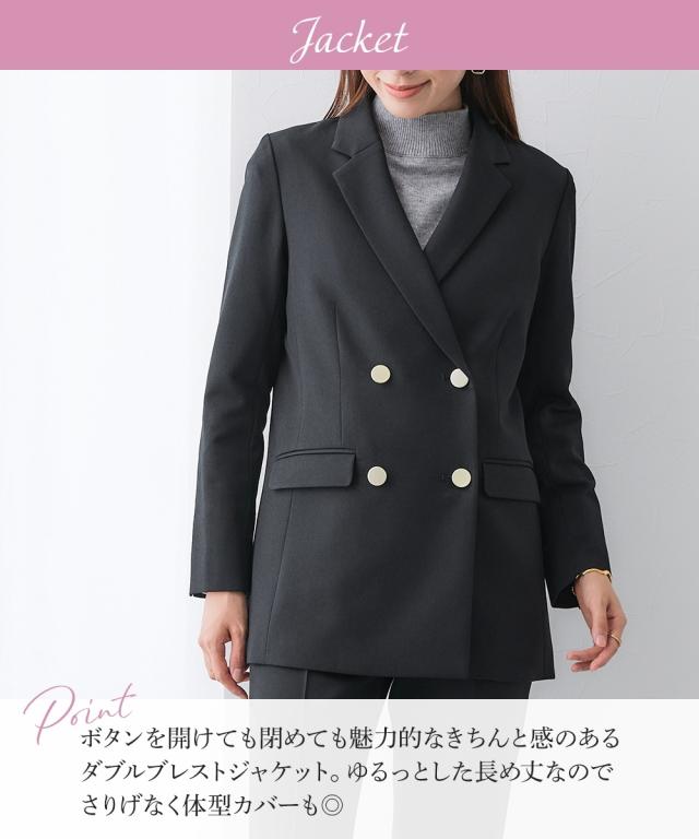 スーツ レディース ダブルブレスト ジャケット 3点セット + ベスト ストレート パンツ ストレッチ ウール調シリーズ 冬 ビジネス | 4L/5L/6L | ニッセン nissen