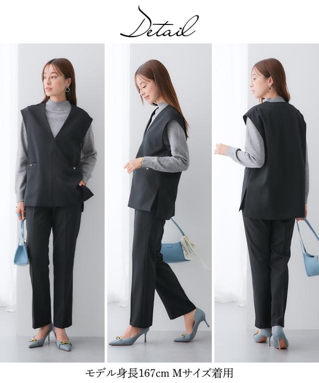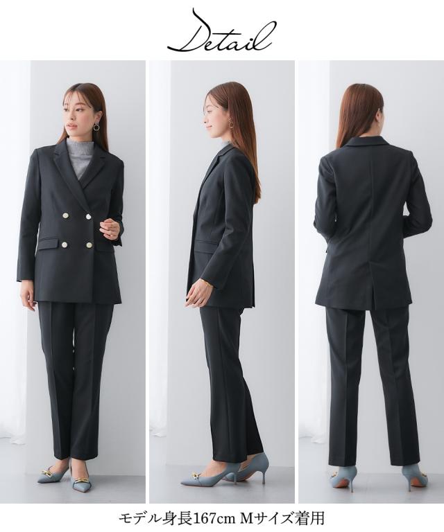 【レディーススーツ】ダブルブレストジャケット3点セットスーツ(ジャケット+ベスト+ストレートパンツ)(ストレッチウール調シリーズ)