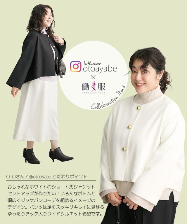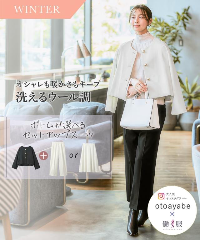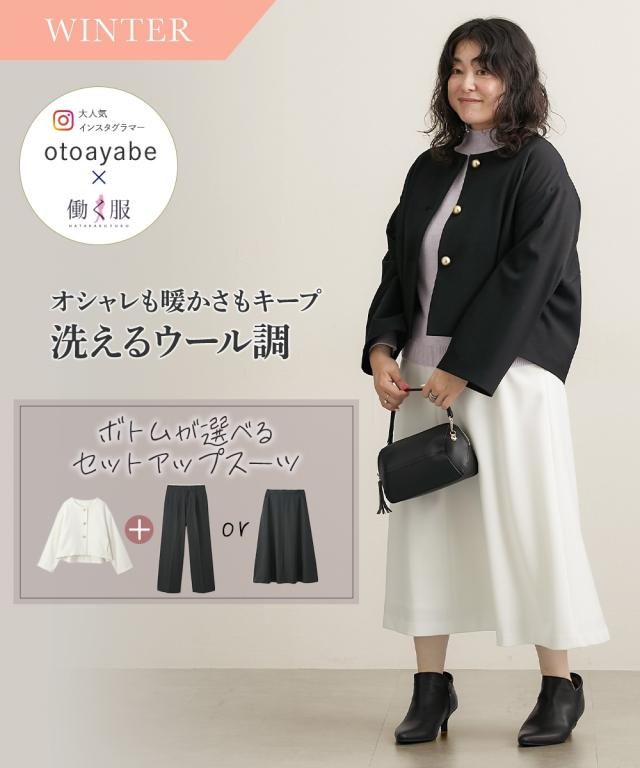 スーツ レディース OTOさんコラボ ボトムが選べる セットアップ ノーカラー ジャケット +ワイド パンツ または ロング丈フレア スカート ストレッチ ウール調シリーズ
