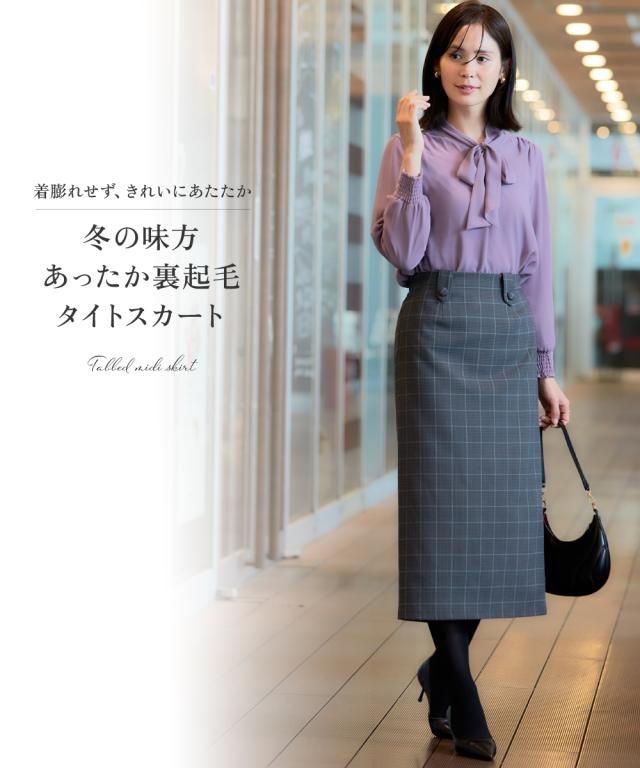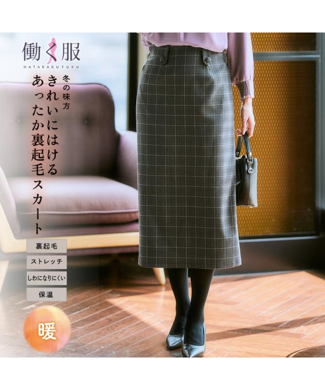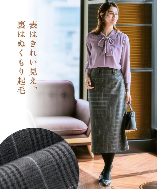 スカート ひざ丈 レディース あったか裏起毛 タブ付きミディ丈 しわになりにくい ストレッチ 保温性 秋 冬 | S/M | ニッセン nissen