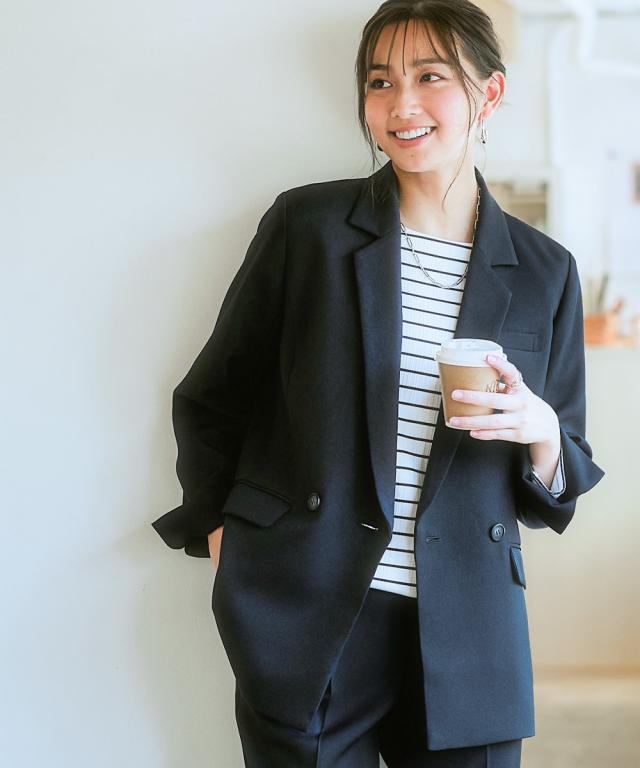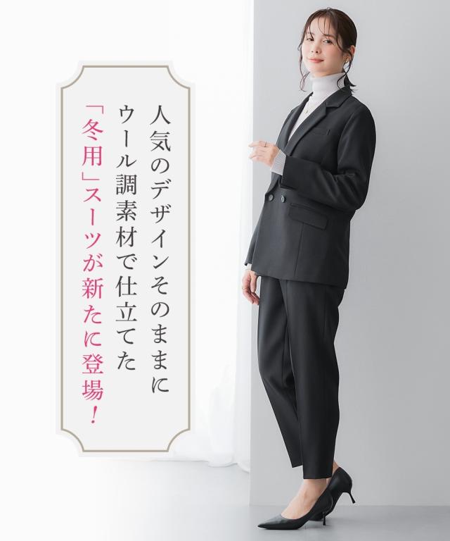 スーツ レディース ウール調素材ダブルブレスト ジャケット パンツ テーラード +テーパード 冬 ビジネス セットアップ | S/M/L | ニッセン nissen